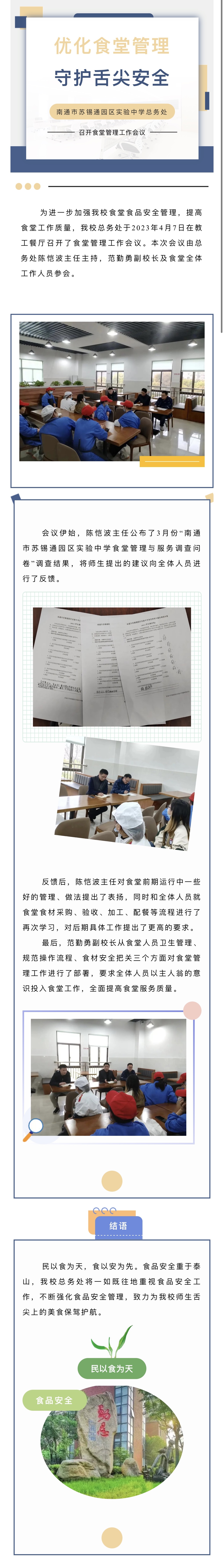 【勤恳教育•前作服务】优化食堂管理 守护舌尖安全——南通市苏锡通园区实验中学总务处召开食堂管理工作会议
