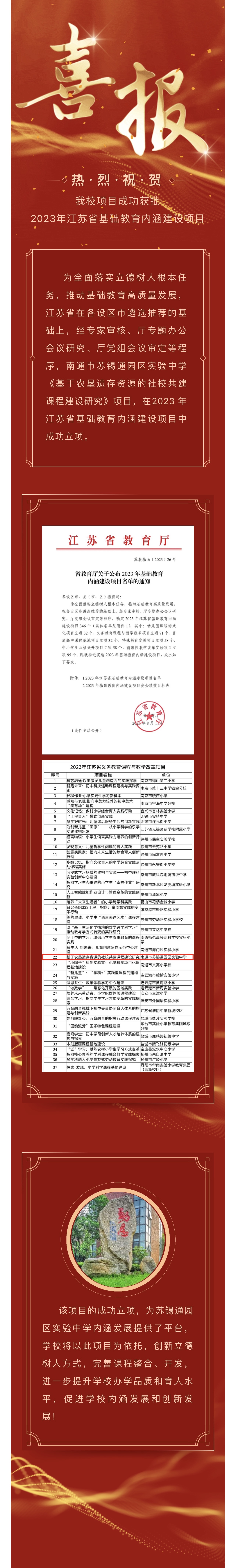 【喜报】我校项目成功获批2023年江苏省基础教育内涵建设项目