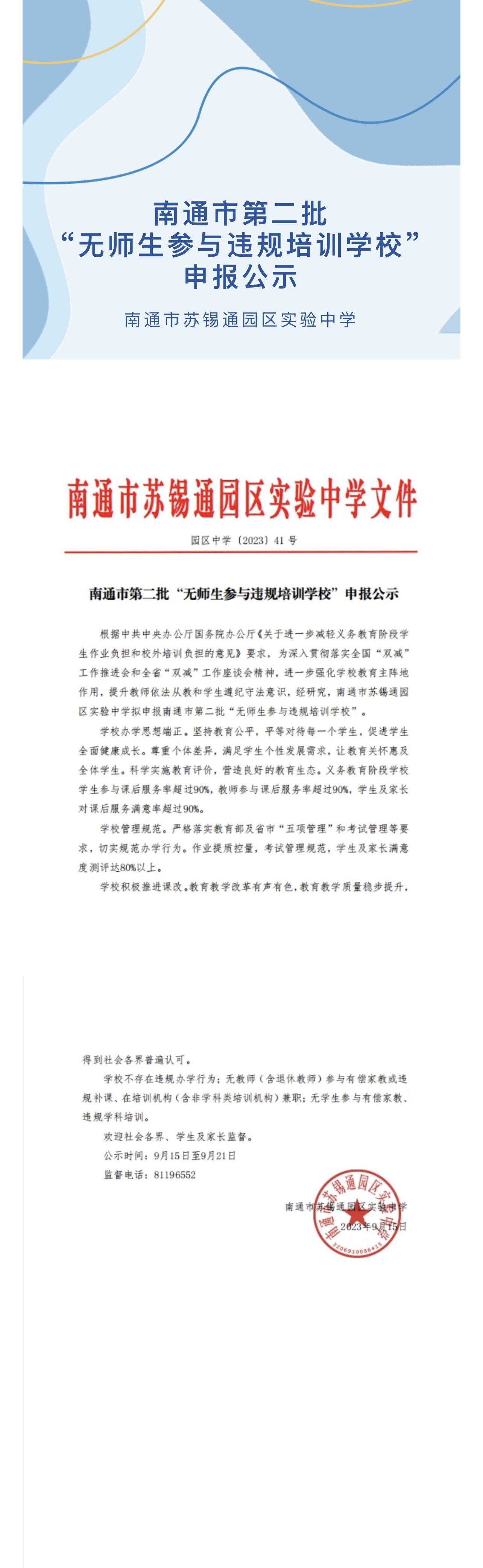 南通市苏锡通园区实验中学2023年国庆节假期告家长书