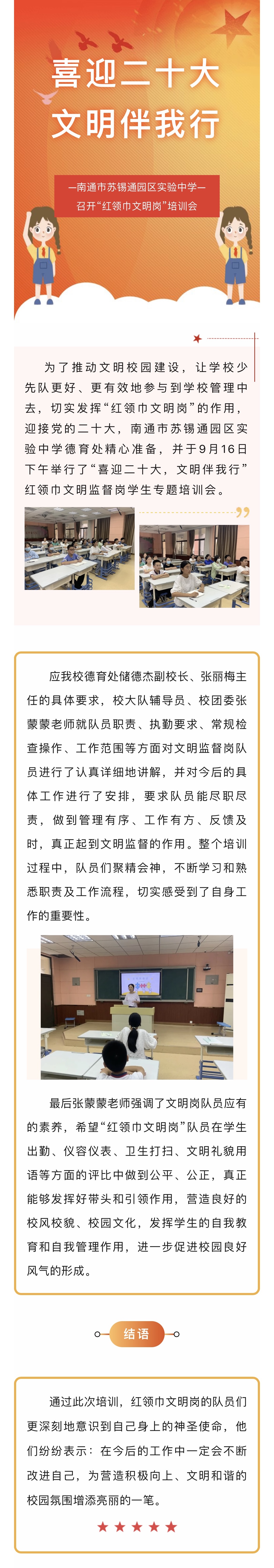 【勤恳教育•润心养德】喜迎二十大,文明伴我行——苏锡通园区实验中学召开“红领巾文明岗”培训会
