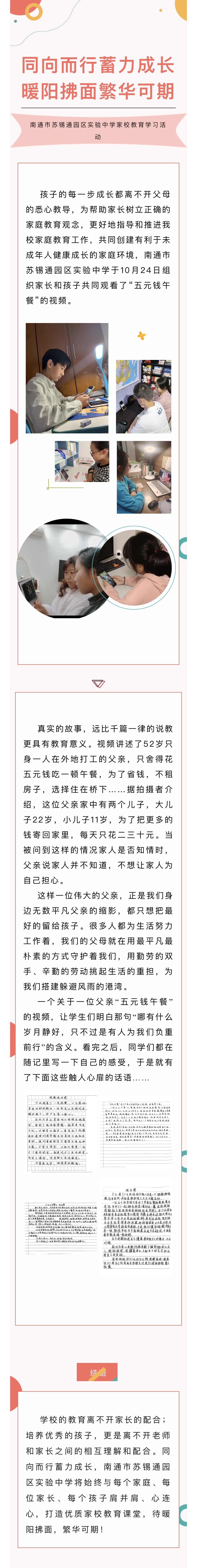 【勤恳教育·润华育德】同向而行蓄力成长 暖阳拂面繁华可期 ——南通市苏锡通园区实验中学家校教育学习活动