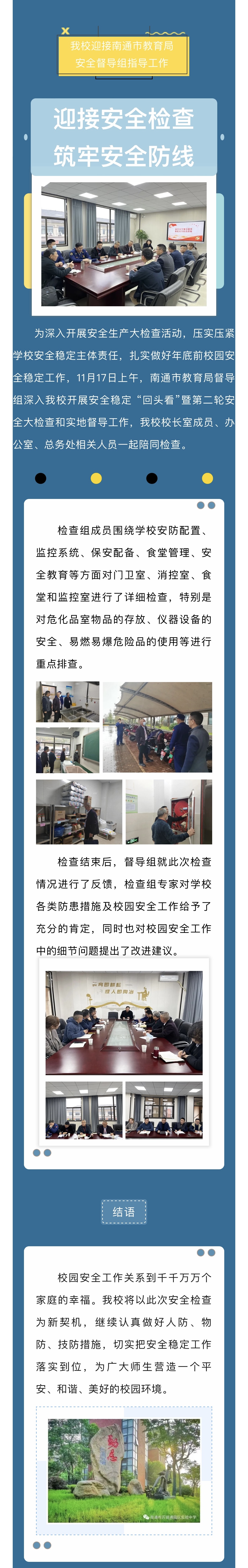 迎接安全检查 筑牢安全防线——我校迎接南通市教育局安全督导组指导工作