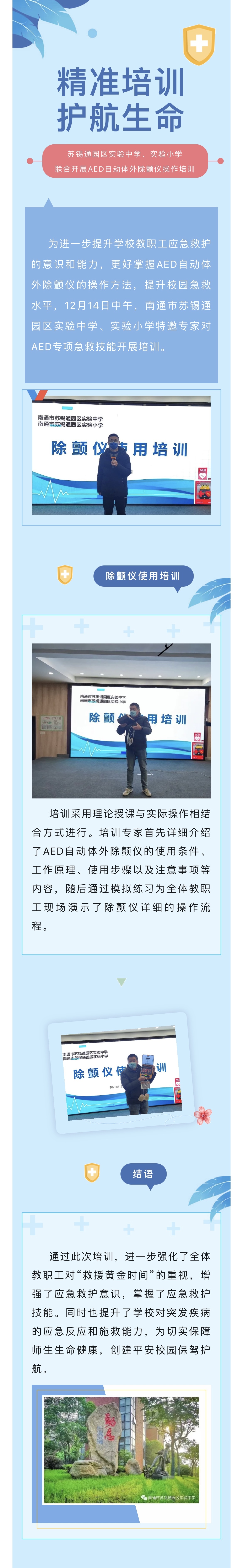 精准培训 护航生命——苏锡通园区实验中学、实验小学联合开展AED自动体外除颤仪操作培训