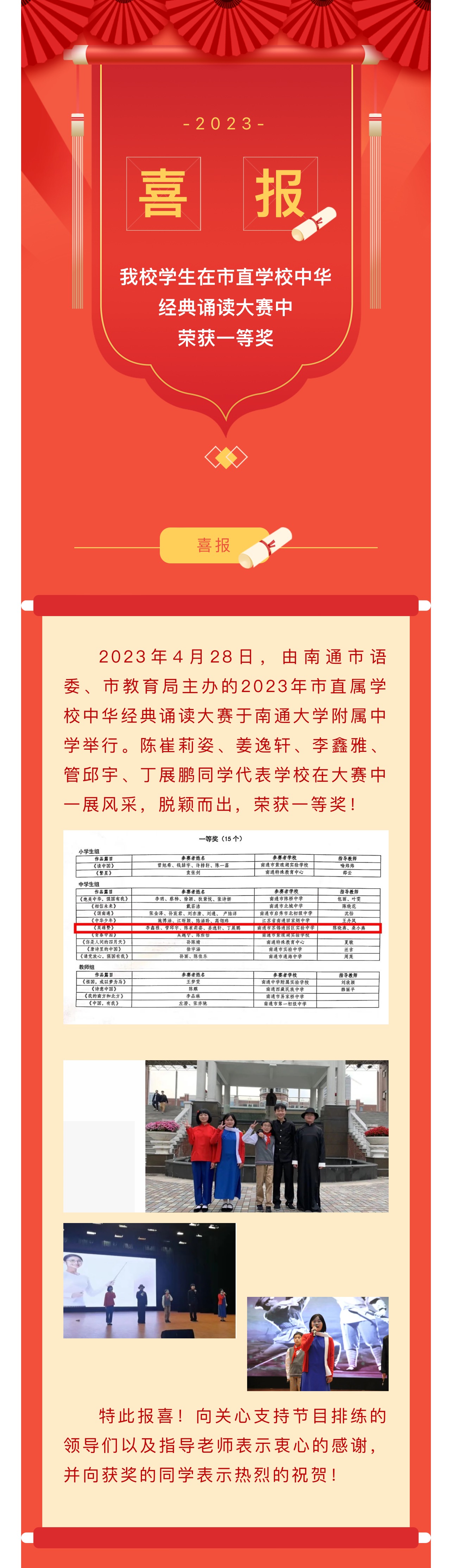 喜报——我校学生在市直学校中华经典诵读大赛中荣获一等奖