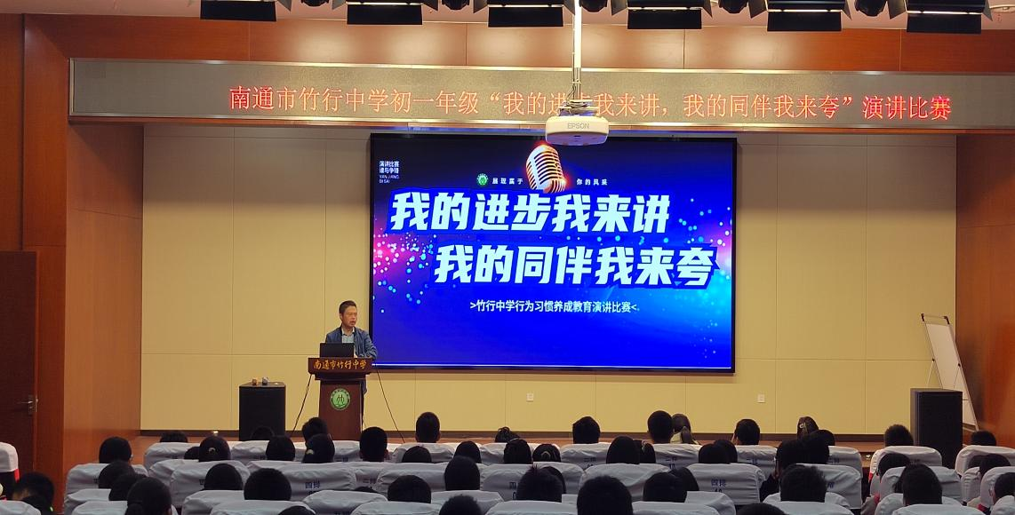 良好的习惯能改变人的一生。为持续引导学生养成良好的行为习惯,全面提高学生的思想道德素质,丰富校园文化生活,11月10日中午,南通市竹行中学在报告厅举行了初一年级“我的进步我来讲,我的同伴我来夸”行为习惯养成教育月主题演讲比赛。活动由政教处黄伟健主任主持。