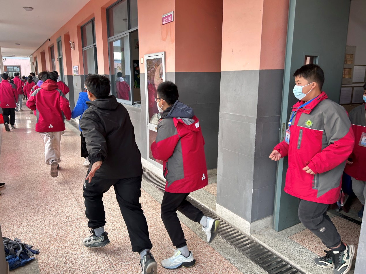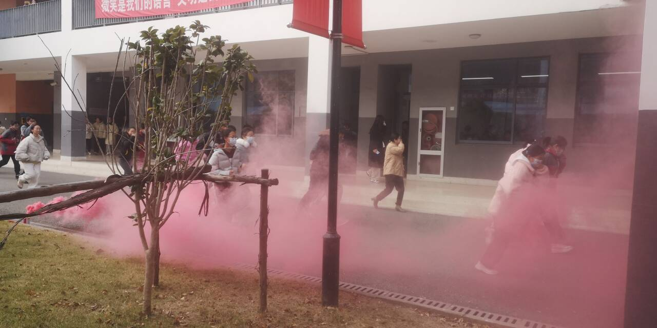 下午14:30,演练正式开始。浓烟弥漫校园,急促的警报声响起,所有师生立即起身,低头弯腰,沿指定路线迅速离开,有序撤离至操场安全区域,由于前期工作准备充分,所有参演人员对流程了然于心,整个疏散过程做到了安静迅速、安全有序。