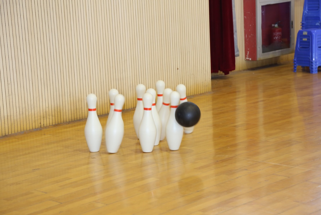本次比赛采用玩具型塑料保龄球作为道具,模拟正规保龄球运动,赛制稍作更改。男子站在7米外,女子站在5米外进行抛球比赛,每人3轮机会,以每轮击倒保龄球个数之和计分。比赛现场紧张有序,选手们纷纷上场一展身手。一串优美的动作,一记漂亮的“全中”,都会博得全场的阵阵喝彩。