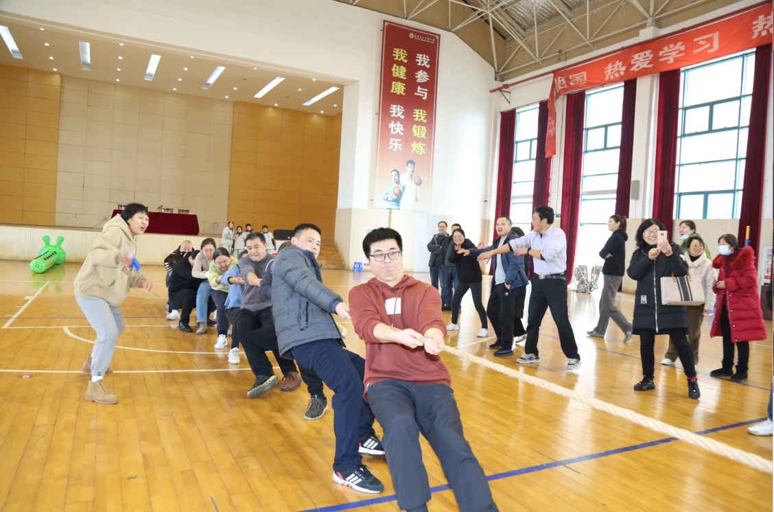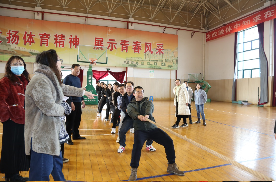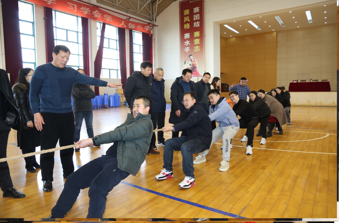 为了丰富广大教职工的业余生活,锻炼体质,让大家在比赛中学会团结与协作,2023年12月29日下午1:00,学校工会组织第二十一届“辞旧迎新”系列活动之拔河比赛在食堂三楼风雨操场举行。行政组和三个年级每队选出5名男教职工和5名女教职工,组长现场抽签,比赛采用循环赛,三局两胜制。拔河比赛作为一项传统而富有激情的团队竞技项目,一直以来都是教职工们热爱的体育活动。本次比赛旨在通过团队合作和力量比拼增强教职工们的凝聚力和向心力,同时丰富校园文化生活。