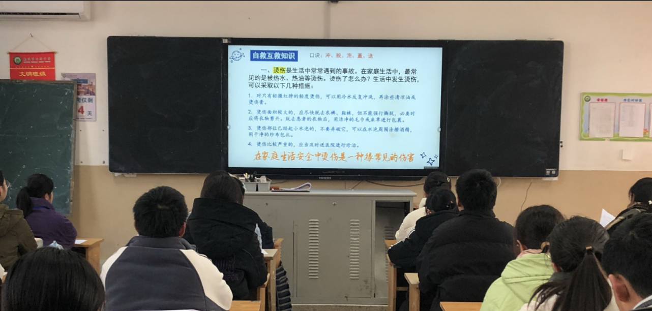 之后,各班主任开展了寒假生活指导主题班会,从消防安全、人身安全、交通安全、饮食安全、防踩踏教育、严防溺水、未成年人禁燃烟火等十个方面,列出如果遇到危险情况时的应对方法,同时对学生的假期学习计划及德育实践作业提出了相关要求和建议。