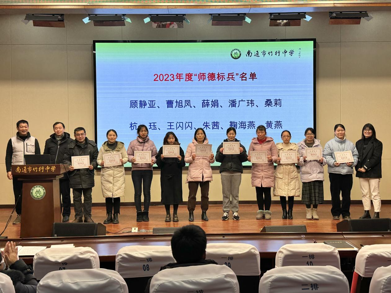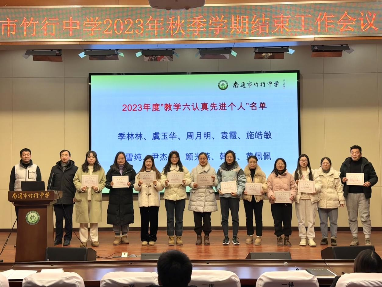学校的发展离不开一支爱岗敬业、业务精湛、充满活力的师资队伍,工会主席陆春雷宣读了获得了南通市竹行中学2023年度“师德标兵”和“教学六认真先进个人”的名单。