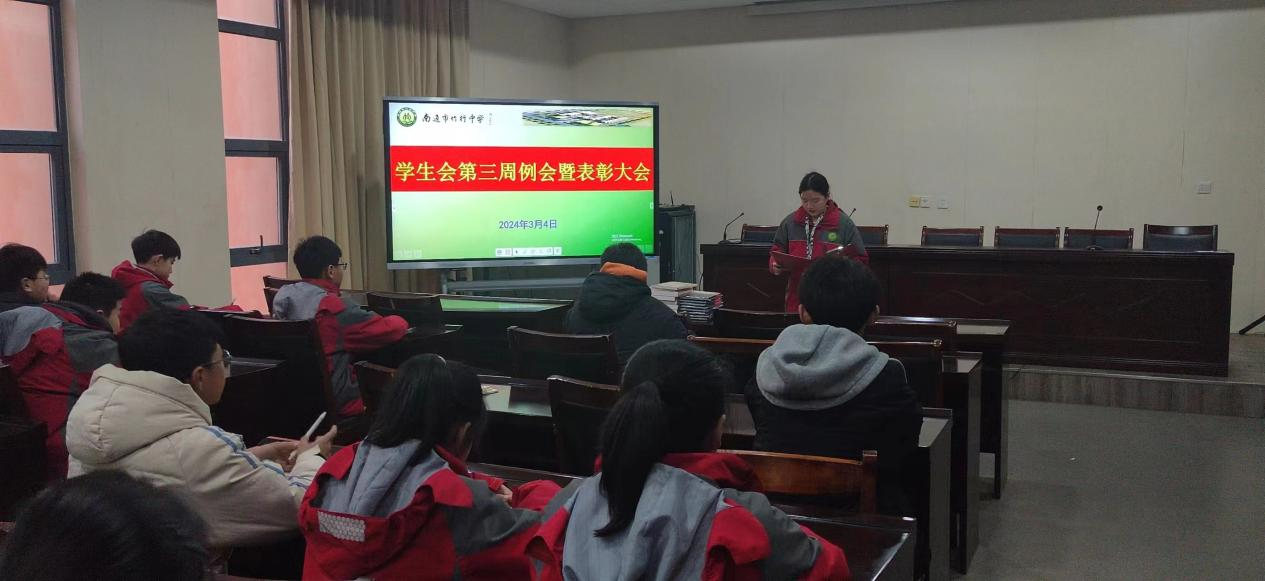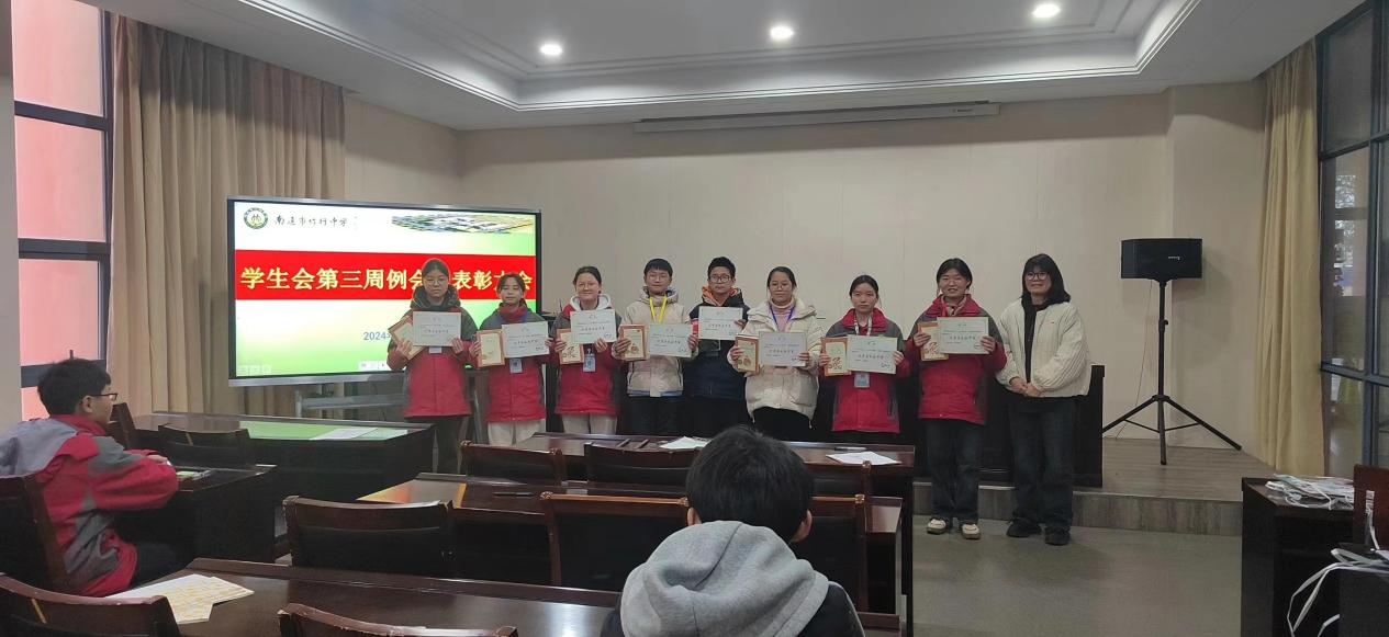 标杆引领,奋斗不息,南通市竹行中学学生会每一位成员在自己的岗位上发光发热,在德育的日常管理中发挥了积极作用。为激励先进,充分发挥优秀学生的示范作用,提高学生会成员积极性及工作效率,3月4日下午,竹行中学学生会在贤行楼第四会议室举行了学生会第三周例会暨表彰大会。
