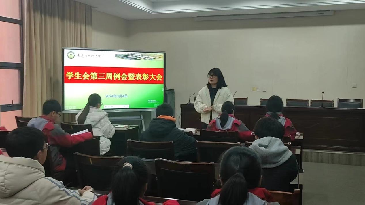 本次大会由学生会主席陈子涵主持,曹金花副校长和团委书记季林林出席了大会。