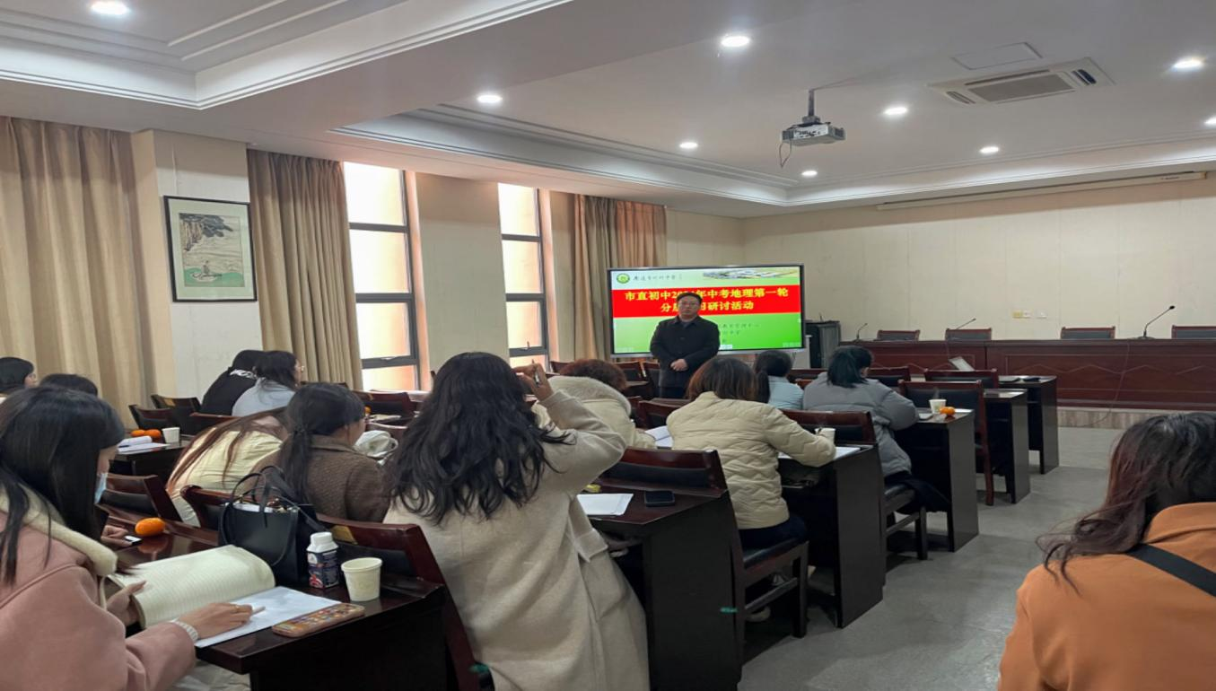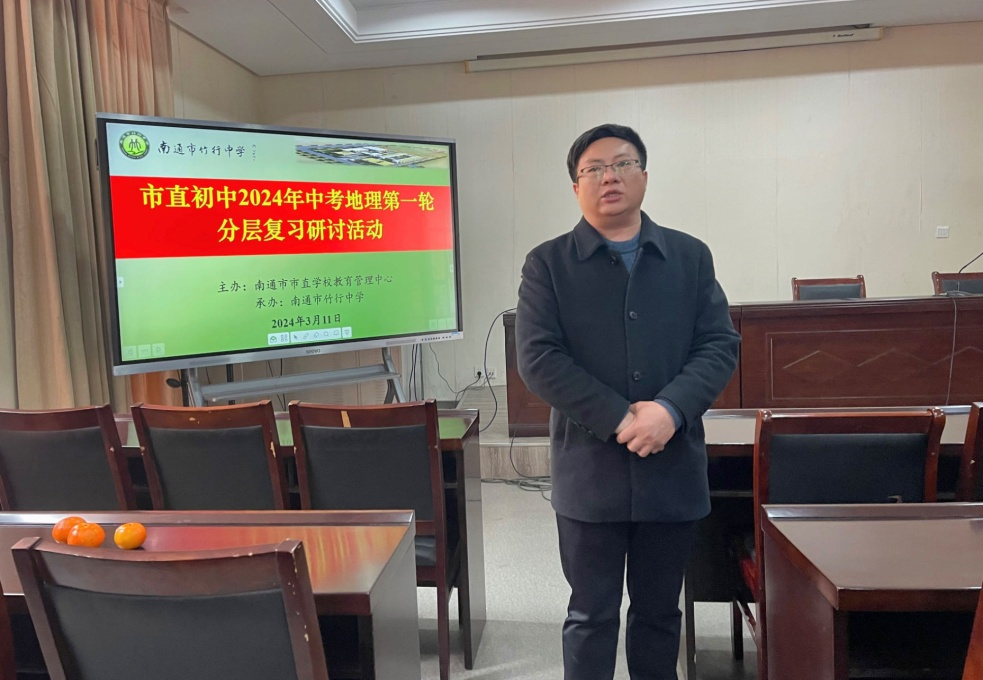 为做好市直初中中考地理一轮复习工作,提高不同层次学生的复习效益,3月11日下午,市直初中2024年中考地理一轮分层复习研讨活动在我校成功举行。来自14所市直初中的30多位地理老师参加了本次活动。活动由南通市市直学校教育管理中心研训员孙明友主任主持。