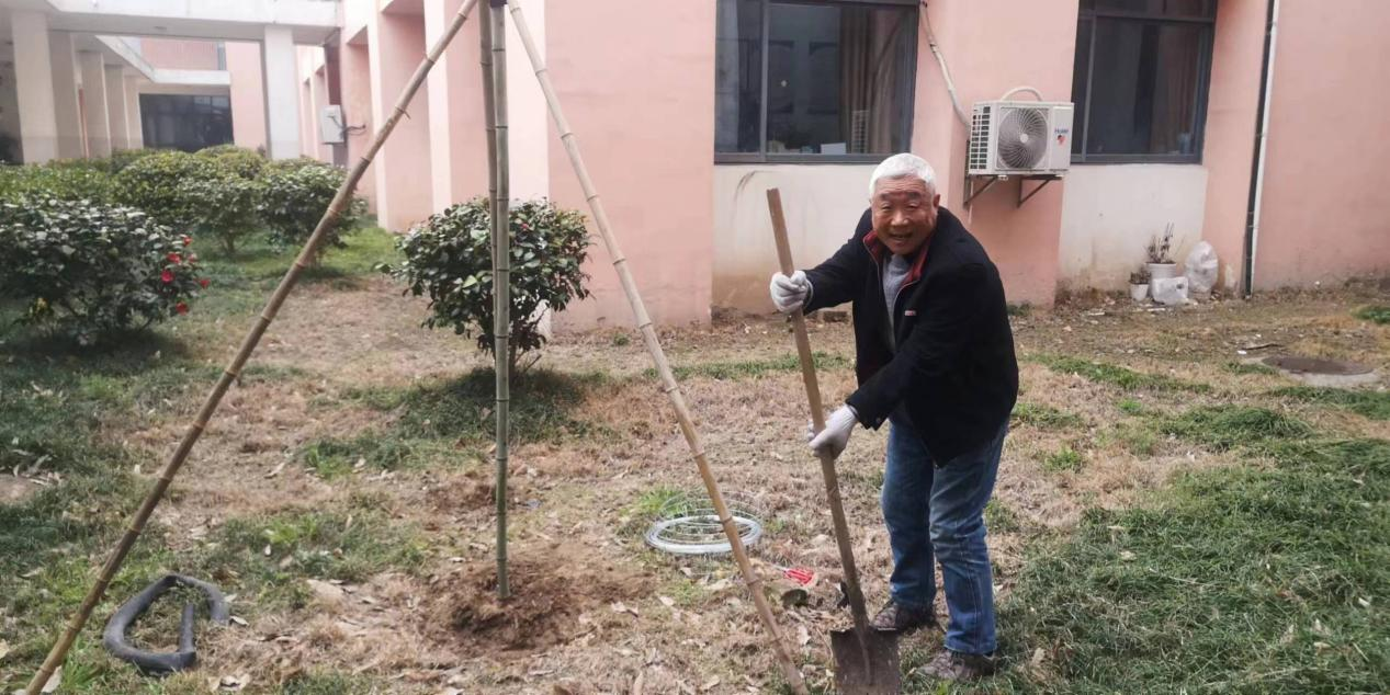 在关工委常务副主任葛校长的带领下,同学们带着工具来到指定区域,三五人一组,相互配合,有的扶竹,有的培土,有的浇水,各个环节衔接有序,配合默契,充分发扬了团结、互助的精神。孩子们精心种下一根根翠竹,津津有味地享受着劳动的乐趣。