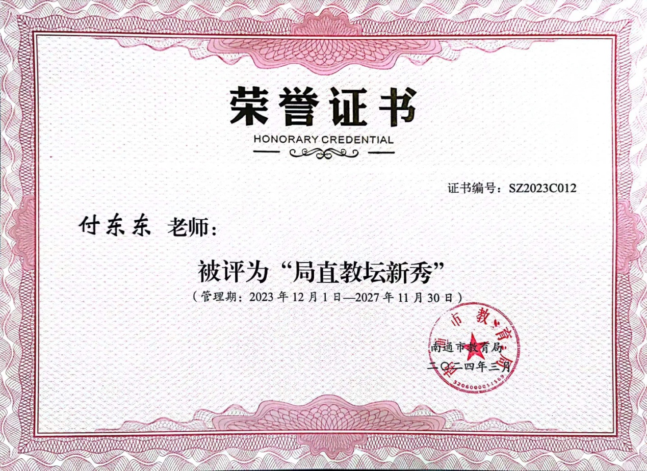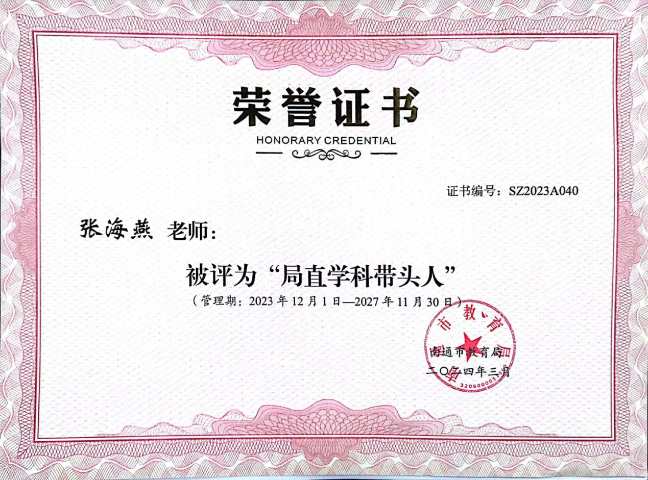 近日,在南通市局直学校(单位)学科(德育)带头人、骨干教师和教坛新秀评审中,我校共有4名教师榜上有名。张海燕老师获评“局直学科带头人”;季林林老师获评“局直骨干教师”;黄佩佩、付东东老师获评市直“局直教坛新秀”。