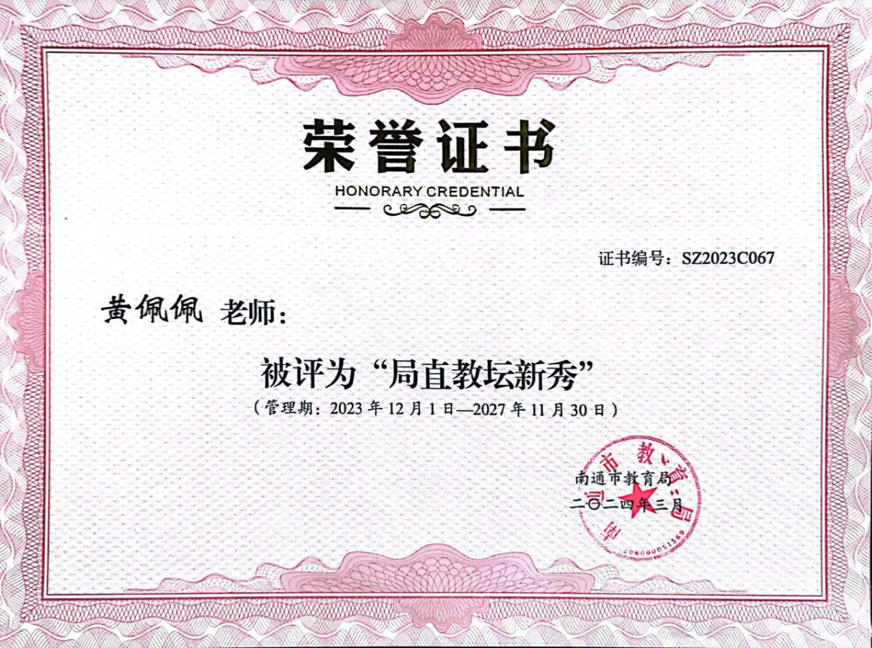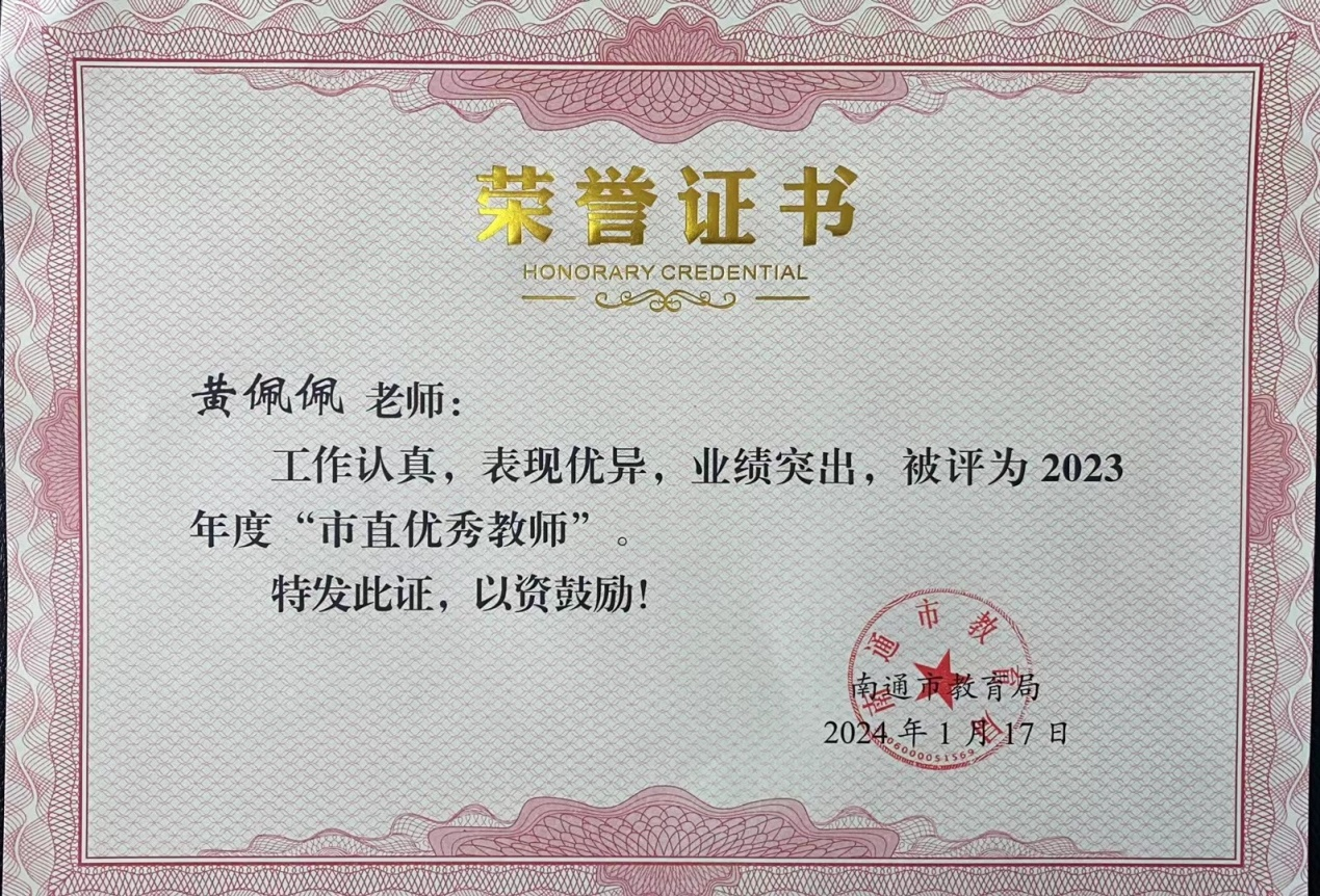 在今年年初的局直学校优秀教师评选中,黄佩佩老师获评为“2023年度优秀教师”。