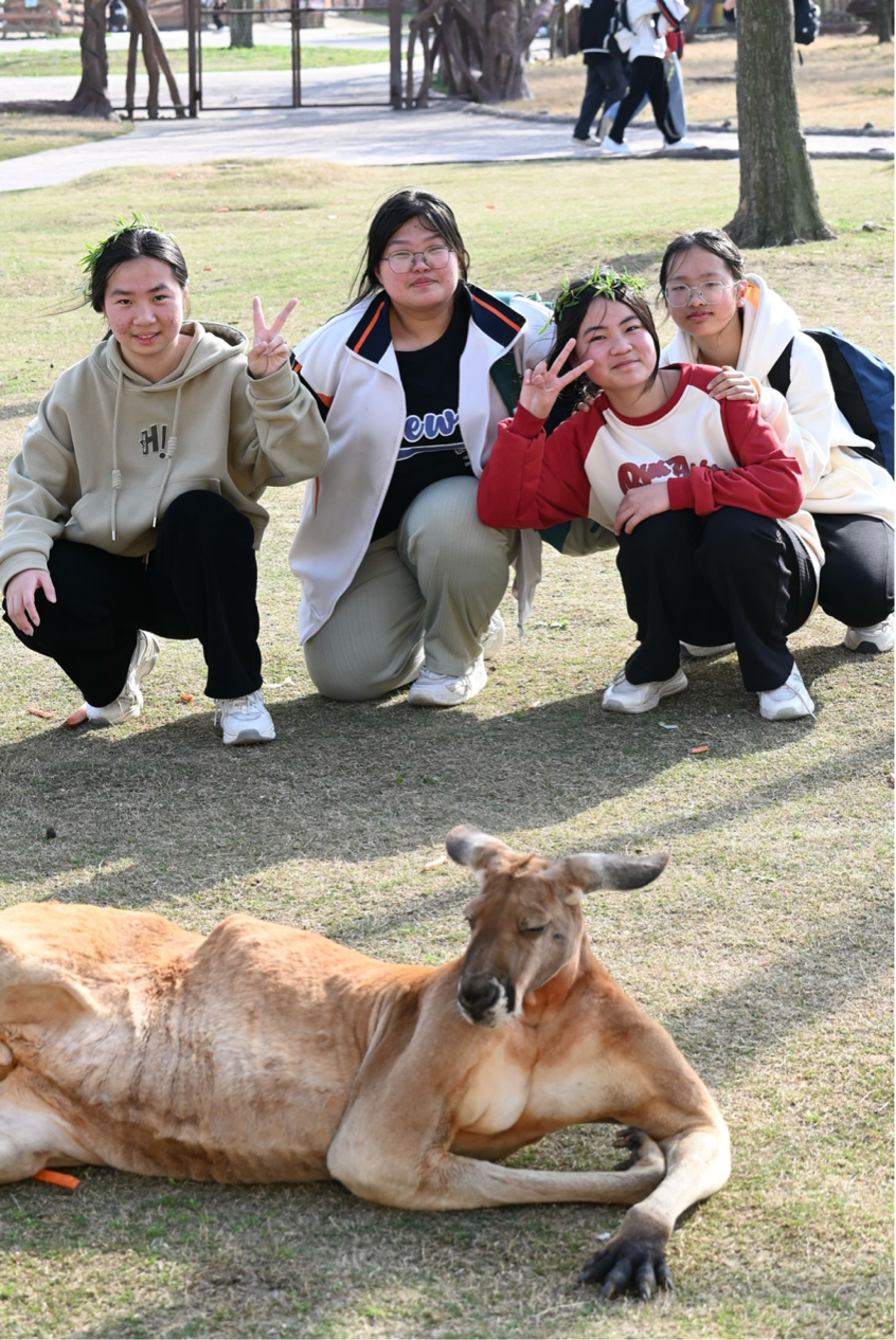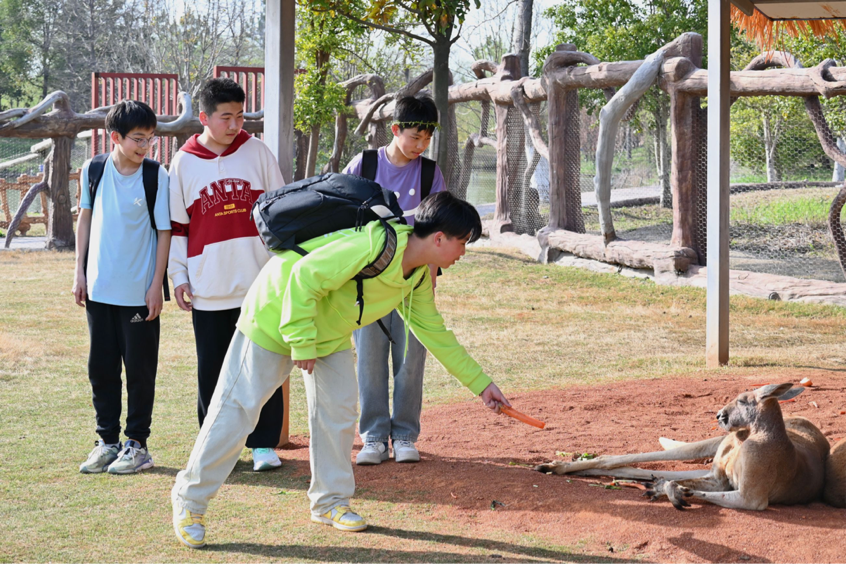 下车之后,同学们自由活动,与动物们零距离接触。有“静如处子”的火烈鸟,任游人如织般的喧闹,它自旁若无人;有时刻紧随着黑天鹅妈妈的丑小鸭,尽管小脚蹼没有父母一般有力,却始终奋力跟随练本事;有“泰然自若”的熊猫,在游人无数镁光灯下,淡定地尝着美食,俨然一个大明星的样子;还有“肚里有货”的袋鼠妈妈,虽然袋子重得都快贴到地面了,仍然慈祥得安抚着自己的孩子,缓缓移动着……动物的世界,让同学们真切地感受到这样一个道理:静下心来,努力为自己蓄势积淀,才能赢得未来的淡然。