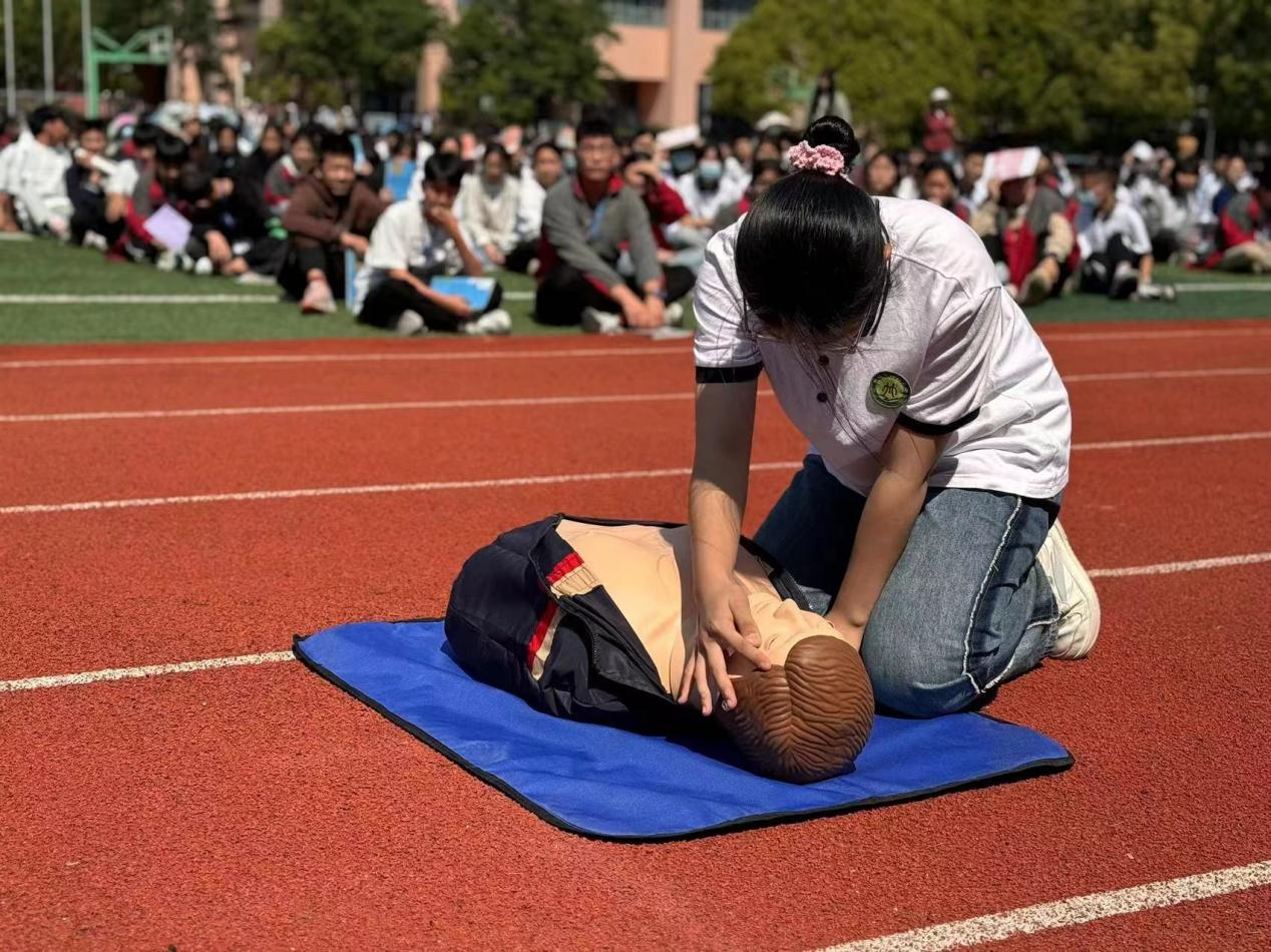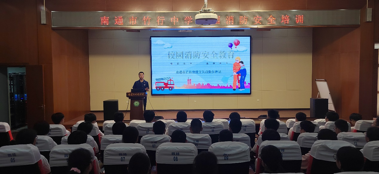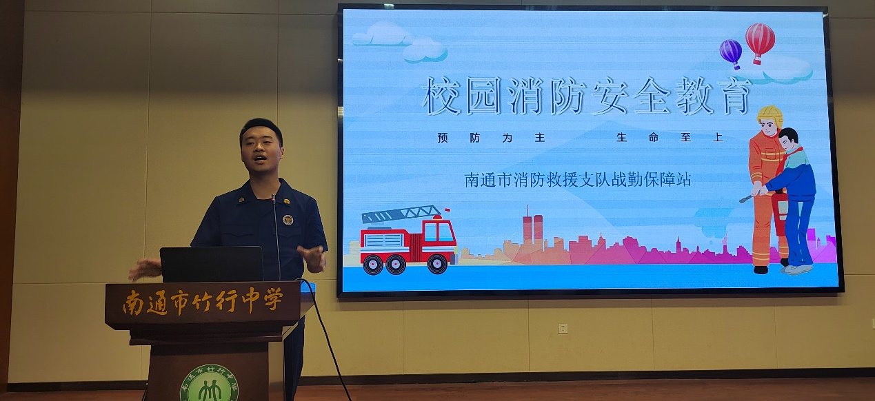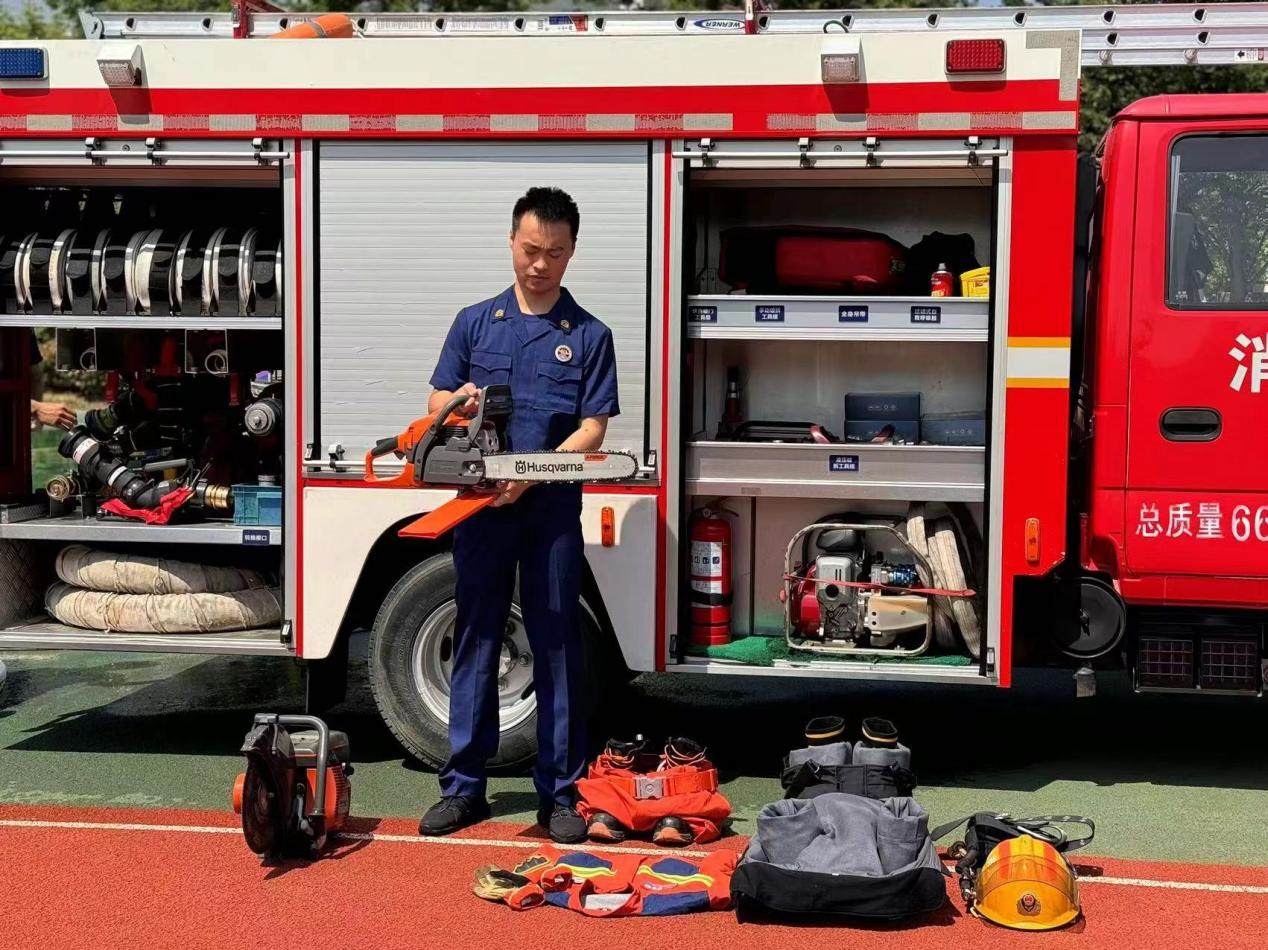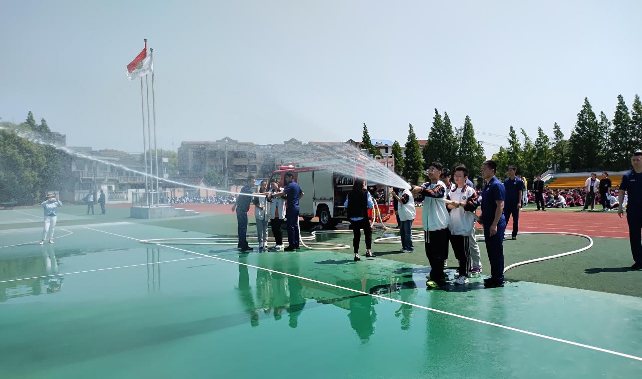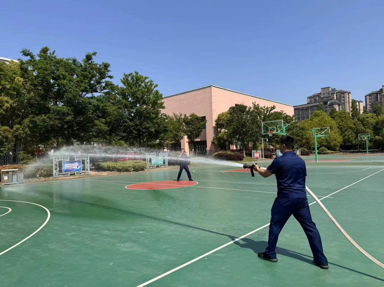 在消防技能演练环节中,南通市消防救援支队战勤保障站的消防员向师生员工介绍了消防队常用救援工具:破拆锯、电锯、防火服、防爆服、排烟风机等消防设备,重点讲解并演示了灭火器消防水枪的使用方法,各班安全委员、班主任、安保人员和食堂工作人员逐一上场亲手实践操作,以练为战,以演筑防,掌握应急救援本领。