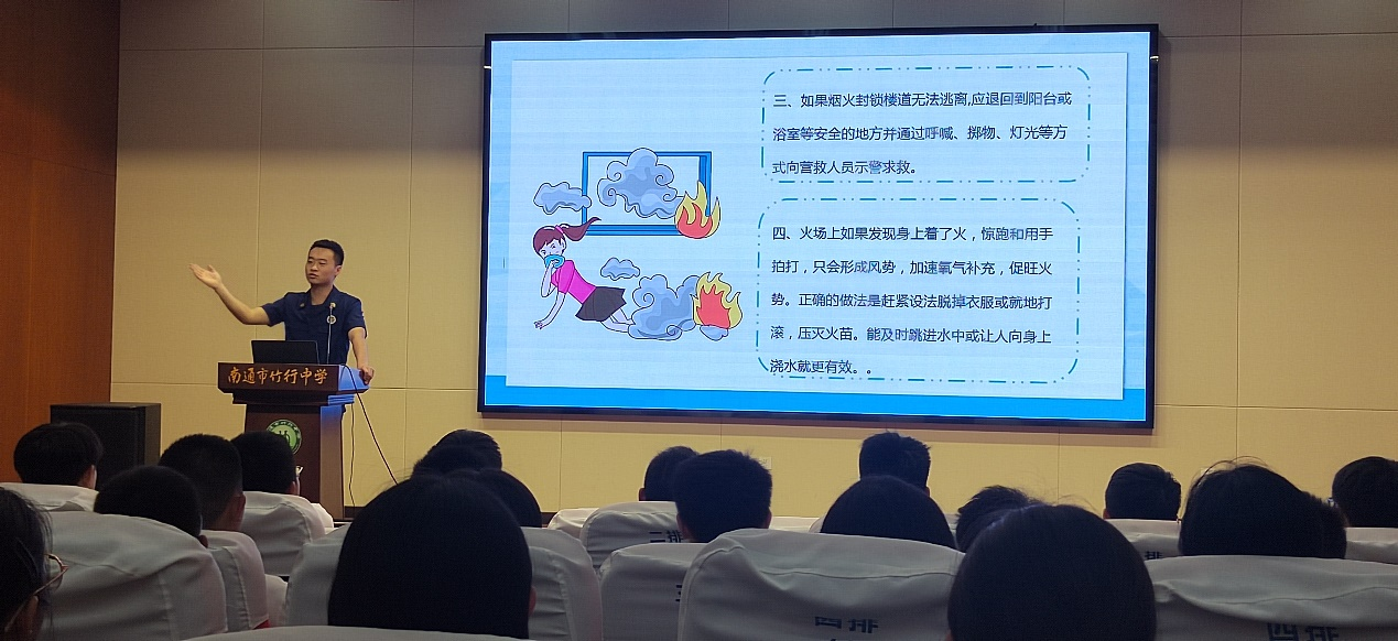 活动结束后,消防救援支队战勤保障站的黄队长在报告厅为我校学生带来了一场别开生面的消防安全培训讲座。黄队长从起火原因分类、校园火灾及其预防、发生火灾时的处置方法、常见灭火器的使用等方面展开讲解,结合具体的事例进行阐述,学生们纷纷表示受益良多。