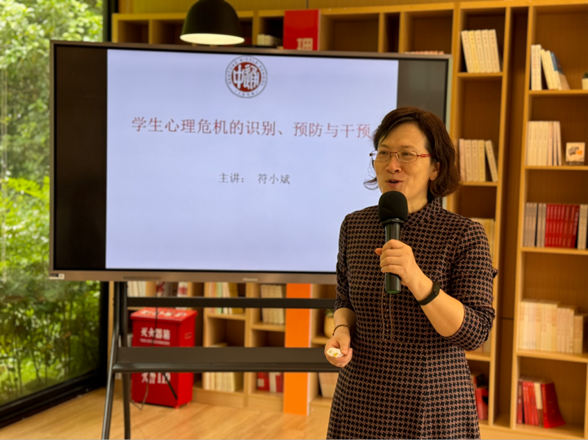 本场培训以“学生心理危机的识别、预防与干预”为主题,紧紧围绕着学生的心理异常信号及危机干预展开。符老师从生理、情绪、认知等方面介绍了学生可能会出现的心理异常信号,强调全体班主任要密切关注学生身心安全,做好学生心理情绪状态的排查、预警及辅导工作,及时了解学生身心状态、家庭关系和学业压力等,并针对有需要的学生开展谈心谈话,疏导学生心理困扰,传递温暖与关怀,确保学生健康成长。