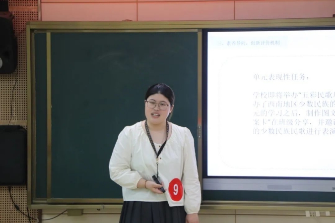 选手们基于精心准备的设计与课件,进行模拟课堂展示。他们以音乐为媒介,巧妙创设情境,生动诠释教学目标、活动与评价的“教学评一致性”,将抽象的音乐知识转化为鲜活的课堂实践。无论是激情洋溢的引导,还是细腻入微的点拨,无不展现着选手们扎实的教学功底与创新的教学思维。课堂中,选手们根据指定的作品,把弹唱巧妙的融合在教学中,充分展示了教师扎实的基本功。