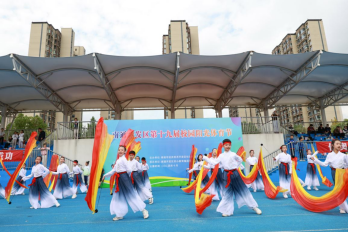 一年一度的阳光体育节是我区推行素质教育、发展体育运动、提高学生身体素质的关键举措与重大活动,更是一场振奋人心的体育盛会。伴着昂扬的音乐,9个参赛代表队炫酷登场,默契的动作、有力的步伐,充分展现了我区少年儿童勇敢创新、挺膺担当的时代风貌。