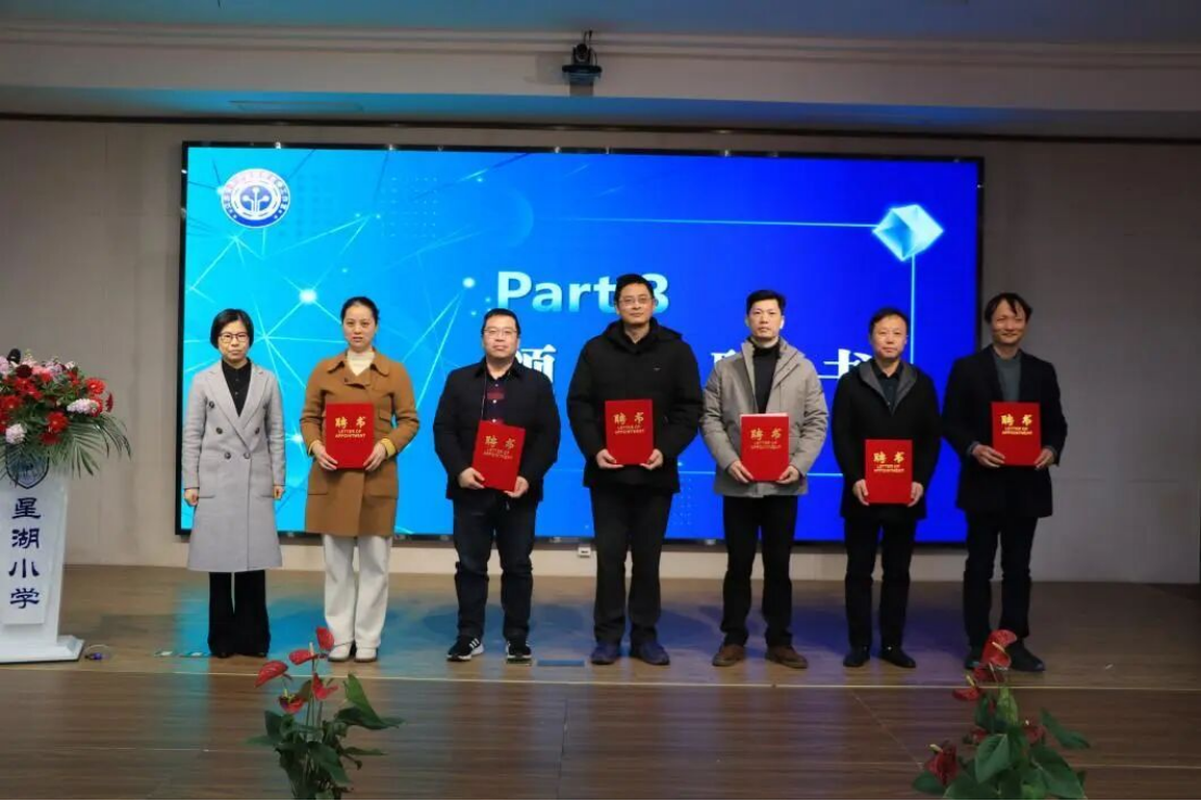 为了更好地促进工作室间青年教师的成长,名师工作室间在活动中进行了第一批“青蓝工程”结对。南通开发区教育工委副书记、实小教育集团党委书记、总校长赵建华为四位指导老师颁发聘书。