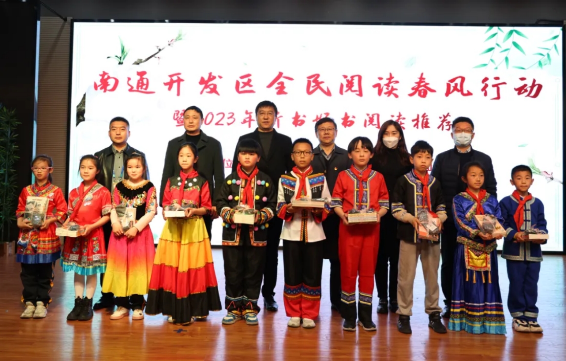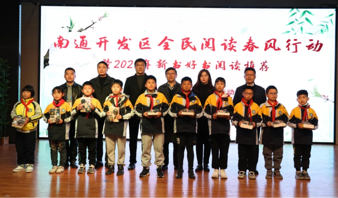 春光明媚好读书,墨韵飘香沁心扉。为深入贯彻落实党的二十大精神和全国教育大会精神,贯彻落实习近平总书记关于推动全民阅读、建设书香社会的重要指示精神,3月23日在南通市竹行小学成功举办“南通开发区全民阅读春风行动暨2023年新书好书阅读推荐活动”。活动通过诗歌朗诵、短视频播放好书阅读推荐等形式,激发浓浓的阅读热情,活动现场还为少数民族同学赠送好书、为老师免费办理图书馆借阅卡,让阅读“行走”起来。