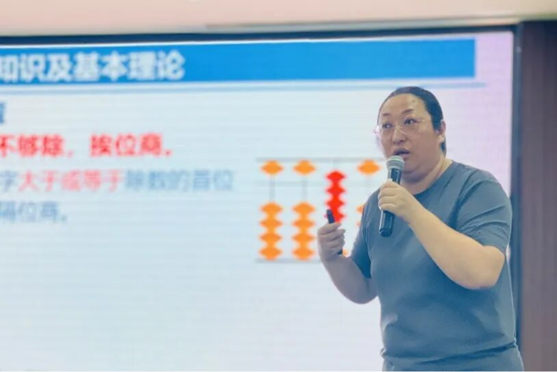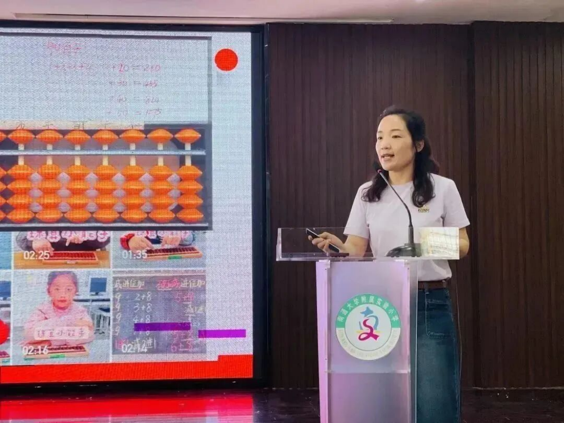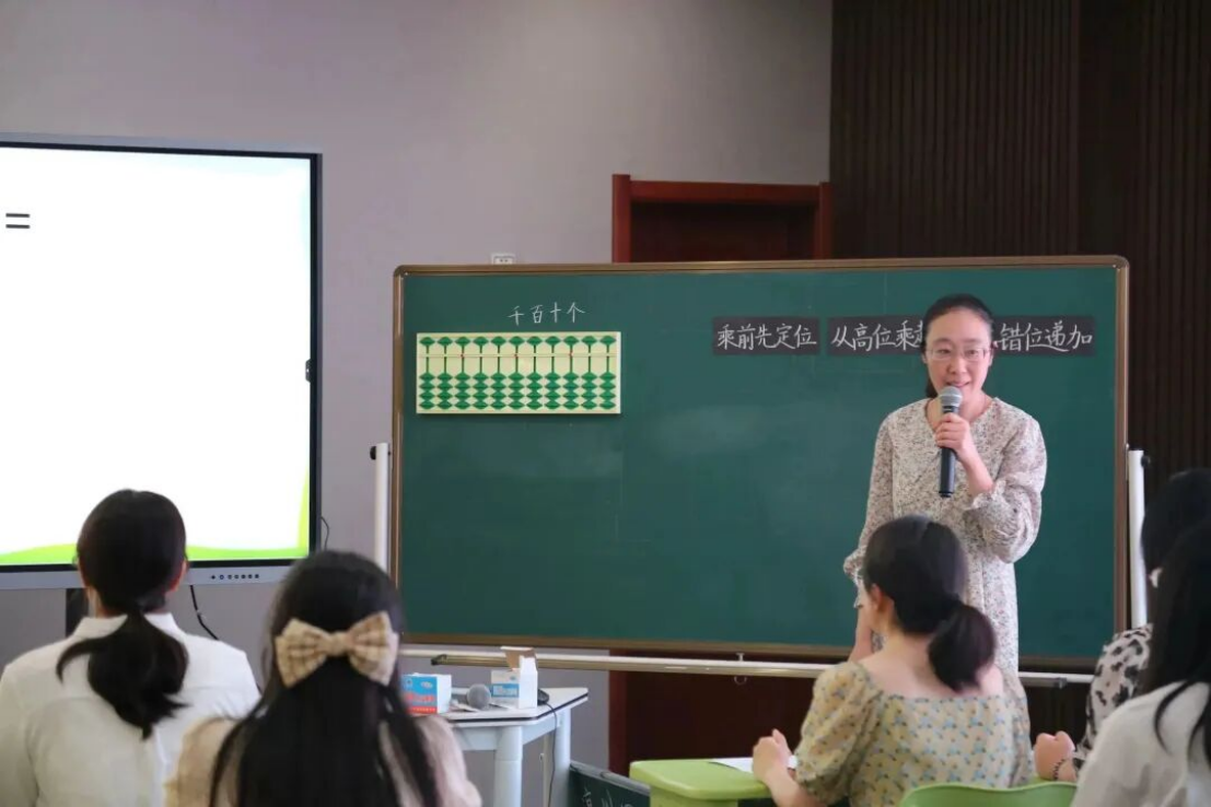 新河校区执行校长朱剑致辞 课堂观摩       珠动生慧,来自联盟学校的6位教师展示了6节精彩纷呈的课。她们的课堂设计巧妙,探究有法,真正实现思维碰撞,素养提升。 南通市经济技术开发区实验小学教育集团  缪丽花 南通市小海小学 陈小美 扬州宝应县实验小学 刘露 南通市如东县丰利小学 李阳 南通市经济技术开发区实验小学教育集团  翟露露 南通市经济技术开发区实验小学教育集团 缪欣廷       瞧!小小龙娃训练有素,自信大方,乐于分享,表达合理。执教老师、听课老师们频频点头,无不称赞。 主题报告       实小集团珠心算总教练杨晓林做了《聚焦“双减”,优化珠心算课堂练习设计》的主题报告。报告从课始、课中、课尾三个不同时段,结合具体课例,详细讲述如何优化珠心算课堂练习设计,报告有温度、有高度、有深度,令人深思。 教材解读       省珠心算种子教师徐宝琴,杨美娟分别对珠心算乘、除法基础知识及教材进行了解读,老师们一边专注地听着,一边认真地记着笔记,还不时地拨拨算盘。 经验分享      种子教师经验交流由江苏省特级教师、镇江市丹徒区青少年活动中心主任钱志平主持。不同的老师讲述着不同的故事,不同的故事呈现了不同学校的老师对珠心算教育实验的共同的情怀和孜孜不倦的追求。 微格教学      微格教学由常熟市塔前小学校长顾培华主持。种子教师和骨干教师们抽签确定了微格教学的课题。六个小组六个课题,老师们精心设计,抱团研究,在很短的准备时间里明重点、破难点、思框架、理细节、备道具、精展示。种子教师精彩到位的点评以及最佳组合和最优组合的评选、颁奖将活动推向了高潮。 1 2 3 4 5 6 领导总结      活动最后,江苏省中小学教学研究室主任郭庆松充分肯定了本次活动并提出三点思考,为我们今后的研究指明了方向。       江苏省珠算协会秘书长陈国忠对本次活动高度赞赏,认为本次活动实用性强,希望老师们活学活用,肩负起辐射传承的作用。        “博观而约取,厚积而薄发”。为期两天的研讨活动,围绕“聚焦双减,优化课堂练习设计”的主题,既有课堂实践层面的示范研讨,又有专家理论层面的高度引领,为珠心算实验教学工作明确了目标、指明了方向,相信未来的珠心算实验一定会在教学探索的道路上越走越好! END 珠算联盟 研讨 文字 | 王茜茜 图片 | 杨晓林 缪丽花 编辑 | 胡梦娇 审核 | 郁菊香 南通开发区实验小学教育集团