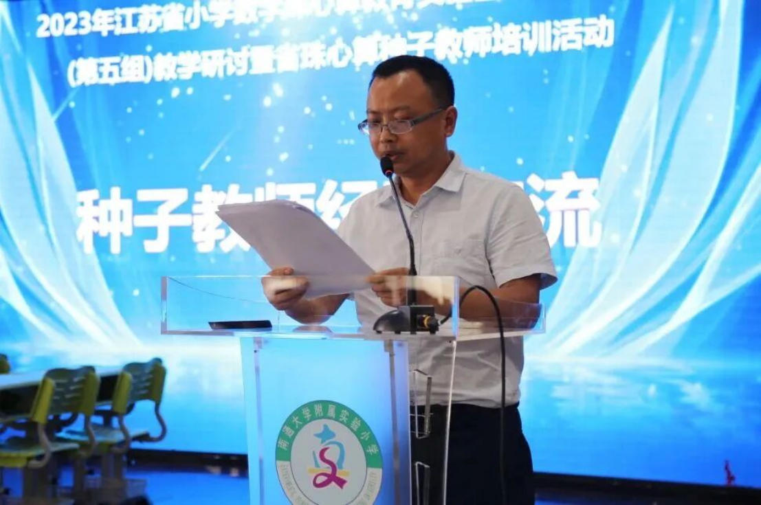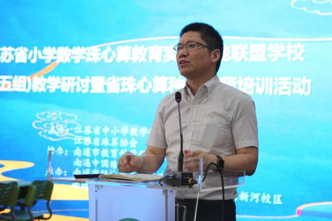2023年6月13日-14日,江苏省小学数学珠心算教育实验基地联盟学校(第五组)教学研讨暨省珠心算种子教师培训活动在实小集团新河校区成功举行。江苏省珠算协会秘书长陈国忠,江苏省中小学教学研究室主任郭庆松,南通市教育科学研究院小数教研员顾娟,南通中国珠算博物馆科教部主任张建,南通开发区教育工委副书记、实验小学教育集团党委书记、总校长赵建华,开发区教师发展中心副主任杨万东以及省珠心算实验专家团队钱志平、顾培华,江苏省珠心算种子教师、骨干教师100余人参加了此次活动。