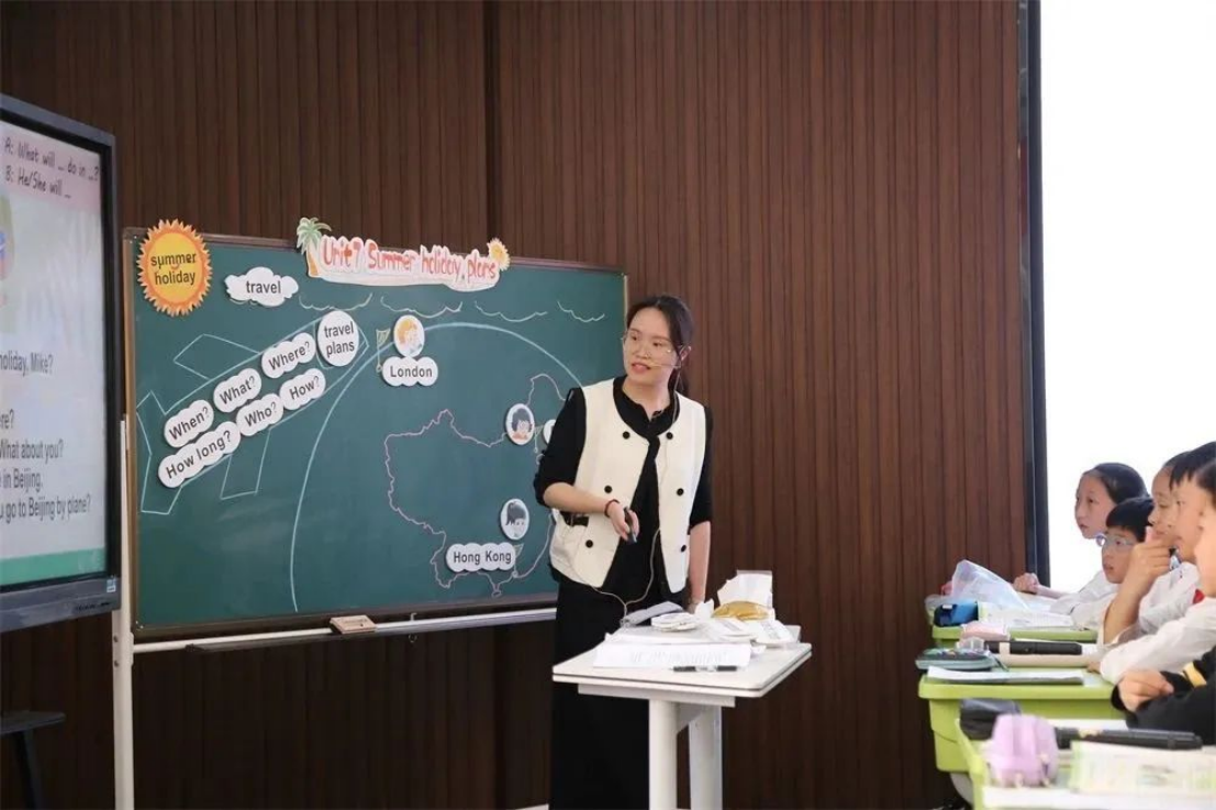 来自南通各地的小学英语教师集聚实小新河校园,用各具特色的签名在报到墙上拼出“vigour”的字样,以生机与活力启动本次活动。 步入春光明媚的校园,首先映入眼帘的是实小龙娃们精心准布置的“中国传统文化展”。该展以“传统美食”、“缤纷国粹”、“二十四节气”及“祖国山河”四大主题呈现中国传统文化精髓。孩子们以图文并行的方式叙述,用雅韵绘画传承中式审美,用丰富英语讲述中国故事。 穿过春意盎然的崇真大道,扑鼻而来的是糕点甜香、纸笔墨香......身着汉服的孩子化身热情好客的文化使者,支起各色摊铺,摆满中华传统吃食与手工。 扎染、书法、剪纸、唐果子、糖葫芦、干花书签、国画团扇、生肖中国结……融合中国传统文化与技艺的小礼物以及地道流利、自然大方的英语讲解是龙娃们对远道而来的与会老师们最诚挚的欢迎。 开发区实小集团基于五下U7 Chinese festivals单元整体设计的四节课,围绕to be a culture messenger的主题,以“know about Chinese traditional festivals—how to talk to foreign friends—learn to talk in details—to be a good culture messenger”这一主线,将单元大任务分解为课时子任务,并在整体中融合呈现。学生在层层递进的任务学习和综合语用中,逐步建构着对单元主题的完整认知和深度思维。 来自崇川的王能儿、海安的孙源蔚、启东的张燕艳、通州的陈佳炜等四位老师基于六下U7 Summer holiday plans单元整体设计教学。 在螺旋递进的任务和复现巩固的结构中,踏实建构学生语言能力,丰富学生的语言体验,拓展学生主题思维品质,培养学生自主合作探究能力。 钱薇薇、姚童月、陈肖老师三位老师也基于绘本与主教材融合教学的深度思考与实践探究,呈现了三节各具特色的展示课。 钱薇薇老师执教四下Unit 8 How are you?,作为优秀展示课例,以立体融合的课堂设计、扎实有效的课堂实践,受到听课老师广泛好评。 姚童月老师执教四下Unit 6 Whose dress is it?融合绘本World book day,引导中年级学生于语言情境中揣摩人物心理,实现语言输出。 陈肖老师执教五下Unit 8 Birthdays(Period 1),以真实的语言情境,引导学生感知、建构、输出。 开发区实小教育集团能达校区执行校长张秀娟作了题为《单元整体教学视角下的大任务设计与实施》的讲座。张校长基于单元大任务设计的理念,与丰富的实践经历,为与会老师践行单元整体教学提供了新的思考维度和实践方向。 27日上午,来自南通市各县区的48位教师代表进行了现场粉笔字书写展示,为与会老师提供了近距离的观摩学习机会。流畅优美的字体,整齐划一的板书,或笔锋坚韧,或行云流水,三尺讲台上一支粉笔的真功夫,来自于他们的不辍坚守。 在回眸观看了市英语教师基本功训练和比赛的视频后,张紫瑶、闻燕楠、岑婷婷三位优秀省赛选手进行了现场说课、模拟上课、英语演讲。扎实的基本功与出色的专业素养,源于教育初心的坚守,更是教师使命的诠释。 戴宁老师分享交流了基本功比赛的经历和体悟,与会老师在深感基本功选手不易的同时,更为其坚韧坚守而动容。教育教学基本功是教师的立身之本,是教师职业生涯中行稳走远的基石,是老师们需愈久弥新的看家本领 活动最后,南通市教育科学研究院小学英语教研员沈国锋老师进行了回顾总结。他高度评价本次活动并指出:本次活动既是对我市英语单元整体教学研究过程性成果的一次展示,更是一次检验,同时也是对后续研究实践的鞭策与指引。 心怀热爱,奔赴山海;循梦而行,芳华待灼。未来,我们也将凝心聚力,共同探索,为南通市小学英语教育的革新与发展作出贡献!期待下一次更灿烂的相约! 文字 | 张艺璇、陶丽 图片 | 印李媛、卞佳峥、缪丽花 编辑 | 王添添 审核 | 郁菊香 南通开发区实验小学教育集团
