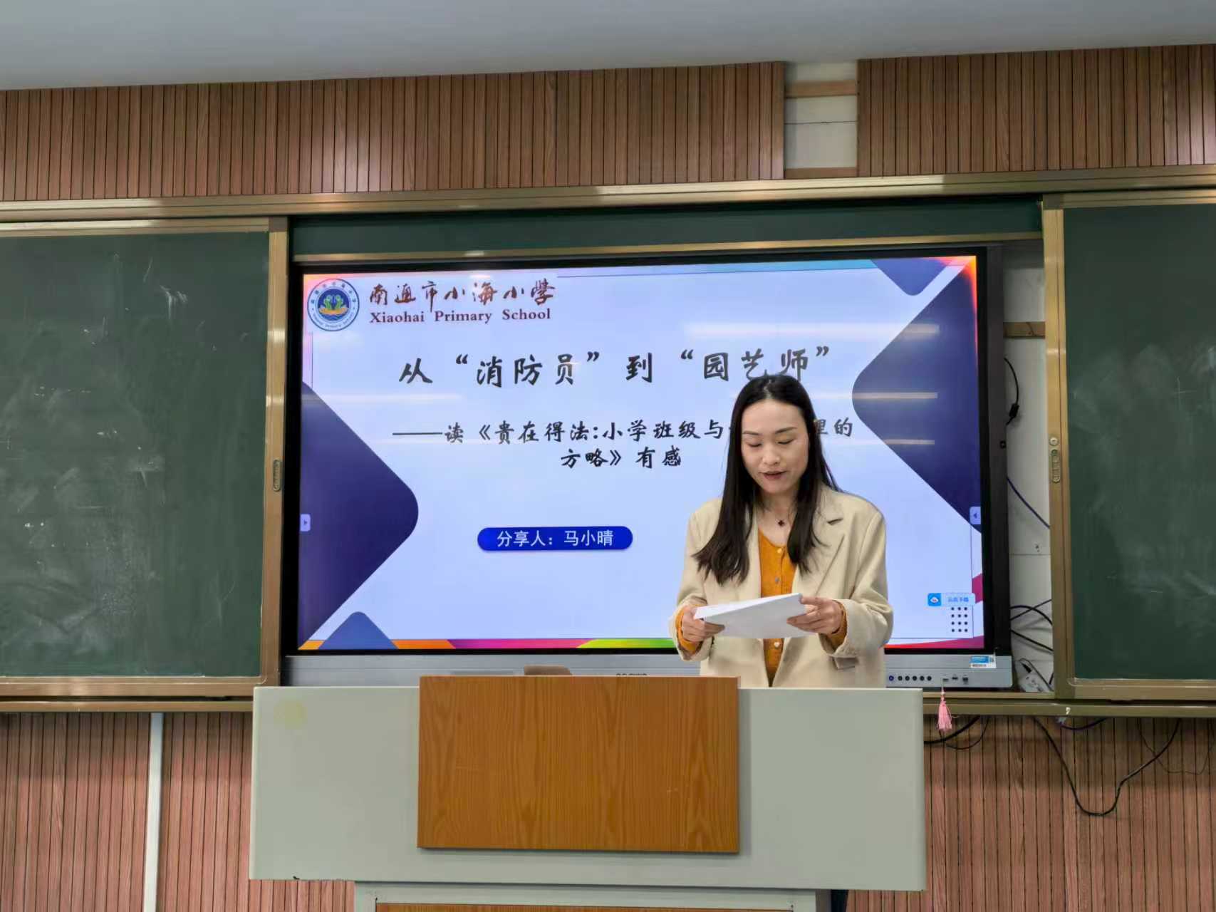马小晴老师带来《从消防员到园艺师——我的柔性管理之路》读书分享。她以生动的比喻,阐述了从“消防员”式的应急处理,转向“园艺师”式的耐心培育这一管理理念转变,启发了教师们用等待花开的智慧,践行更有温度的育人方式。