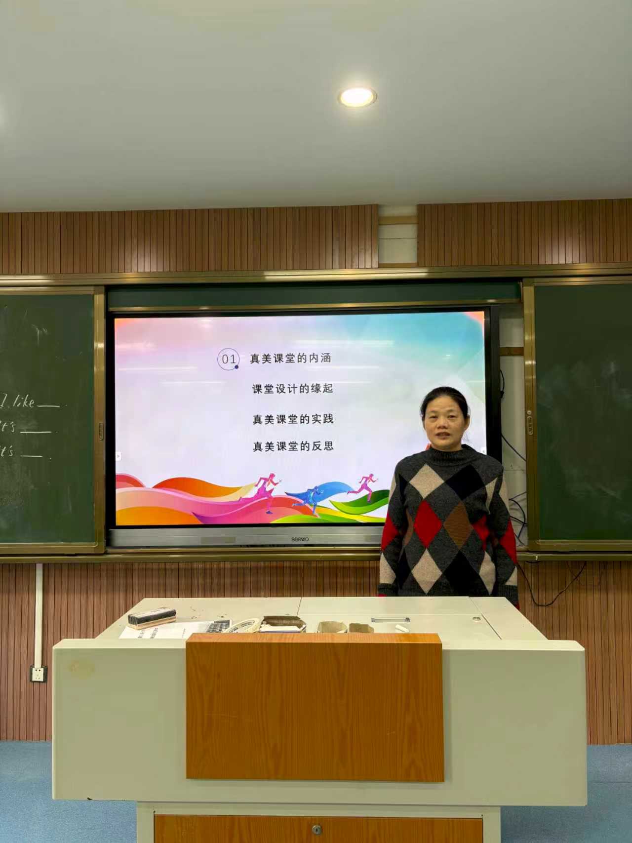 王娴老师以“真美课堂的建构路径”为题,分享了她在英语教学中融入“真美”理念的实践探索。她通过创设真实情境、挖掘语言之美、激发思维之美,让课堂成为学生体验美、感受美、创造美的成长空间,为全组教师提供了“真美课堂”落地的具体范式。