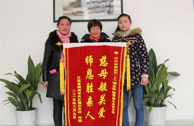 3月9日,开学第二周,竹行中学九2班一位学生的母亲满怀感激之心,将一面锦旗送到了校长室,以此感谢班主任陆香绒和其他任课教师对孩子无微不至的照顾和关怀。 据了解,这个同学来自江苏邳州,家里还有四个正在上小学的弟妹,父母亲都在竹行打工,家庭条件较为拮据。上学期开始,她身体出现不适,懂事的她不想让老师和父母知道,怕增加家里负担。但细心的陆老师还是发现了一些异常,私下里问明了情况。此后,陆老师经常留心她,有时在她疼痛时及时通知其家长,父母难以到来时主动带她去卫生服务中心挂水,一陪就是两小时。年前,陆老师得知她在竹行过年,于是又亲自去家访,了解她的身体状况,并赠送她一件羽绒服和一些学习用品。 锦旗虽轻,但“慈母般关爱,师恩胜亲人”十字却情深意重。家长动情地说:“孩子自入校以来,尤其是上学期,得到班主任和其他任课教师的精心呵护,老师的关怀之情甚至超越了父母亲。感谢老师无私的付出,也感谢学校的领导培养了这么优秀的教师!” 关心热爱学生,对学生负责是一个教师应尽的责任,陆香绒老师就是竹行中学优秀教师群体中的一份子。学校像陆老师那样的人还有很多,他们都在各自的工作岗位上默默奉献,努力做到让学生安心,让家长放心。
