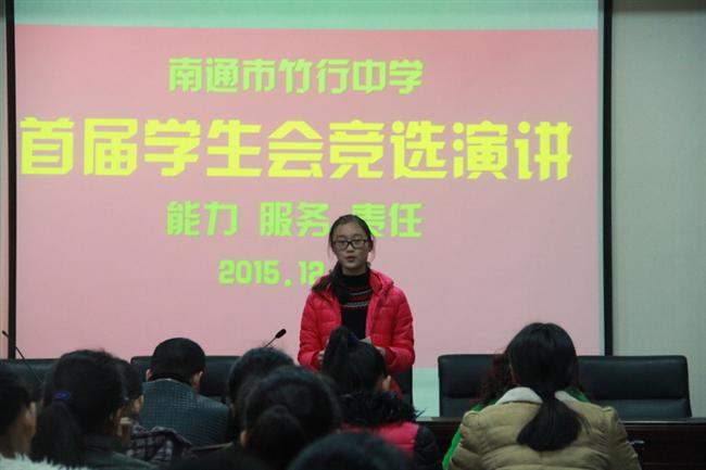 为了调动学生参与我校学生日常管理的积极性,培养学生自我管理的能力,丰富校园文化生活,提高学生综合素质,12月10日下午,竹行中学举行了首届学生会竞选活动。 本次竞选共有17位同学参加,竞争学生会8个席位。竞选过程中,各位选手侃侃而谈,淋漓尽致地展现了自己的文采与口才,并且对将来的工作有一定的规划和展望,同时表达了自己强烈的责任感和使命感,希望在提升自己能力的同时,更好地服务同学。整个竞选活动持续了一个小时,最后经评委老师讨论,确定了首届学生会干部名单。 此次活动,既给学生提供了一个展示自己的舞台,又很好地推动了我校的德育工作,收到了良好的效果。