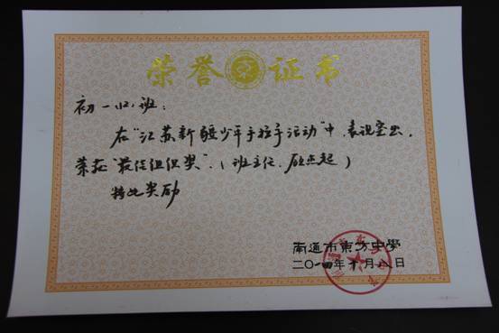 南通市东方中学“江苏新疆少年手拉手献爱心捐赠活动”表彰公示