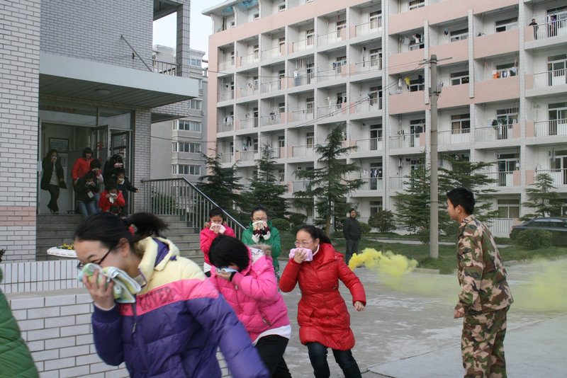 演练过程中,正在宿舍休息或模拟夜间睡眠状态下的寄宿学生突闻消防警报后,及时打开宿舍门,弯着腰、猫着步,捂住口鼻,按照既定程序,沿着疏散线路,紧张有序地向安全区域集合,不到2分钟,近700名寄宿生和宿舍管理员老师安全撤离到指定位置。