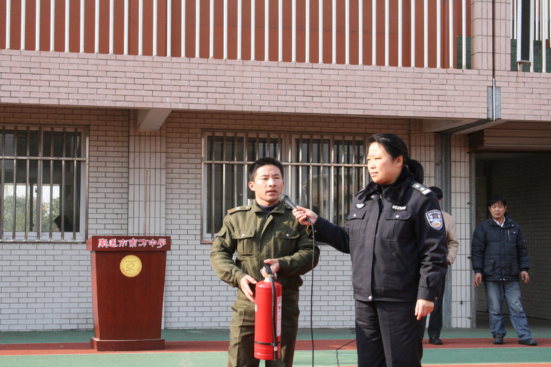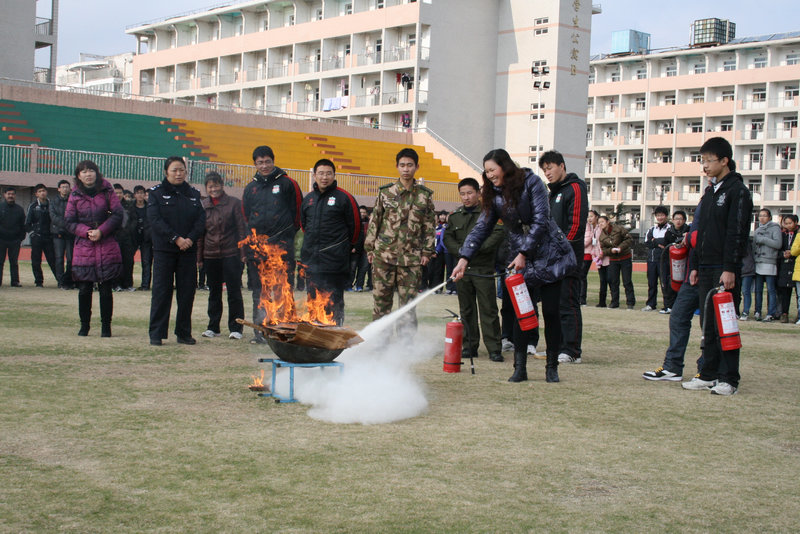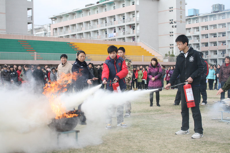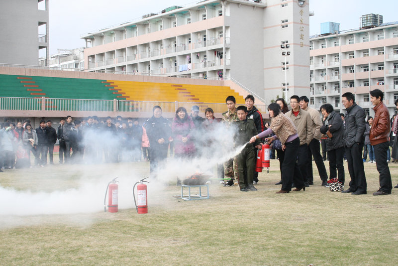 随后,开发区消防中队的柳队长给同学们讲解了灭火器的使用要领,并指导宿舍管理员和同学代表实际操作,扑灭了燃烧的大火。最后由消防中队的倪队长给同学们进行了冬季消防安全教育。
