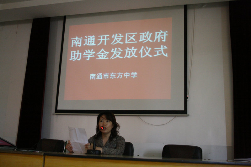 2012年5月30日中午,我校在阶梯教室举行了南通市经济技术开发区政府助学金集体发放仪式。校政教处和初一、二年级组长一起参加了发放仪式。