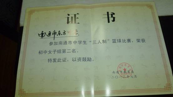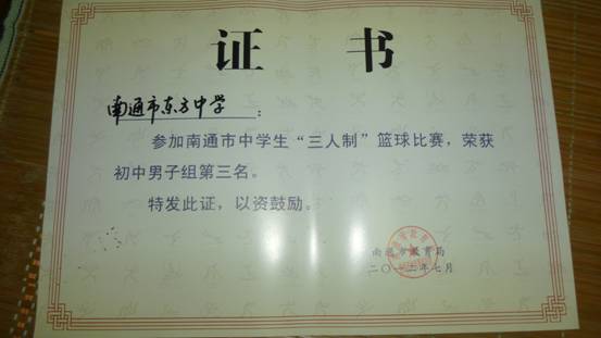 从刚刚结束的“南通大市中学生三人制篮球赛”赛场传来喜讯,经过三天的奋力拼搏,全市16支球队激烈角逐,我校篮球队取得初中女子组第二名,初中男子组第三名的好成绩。