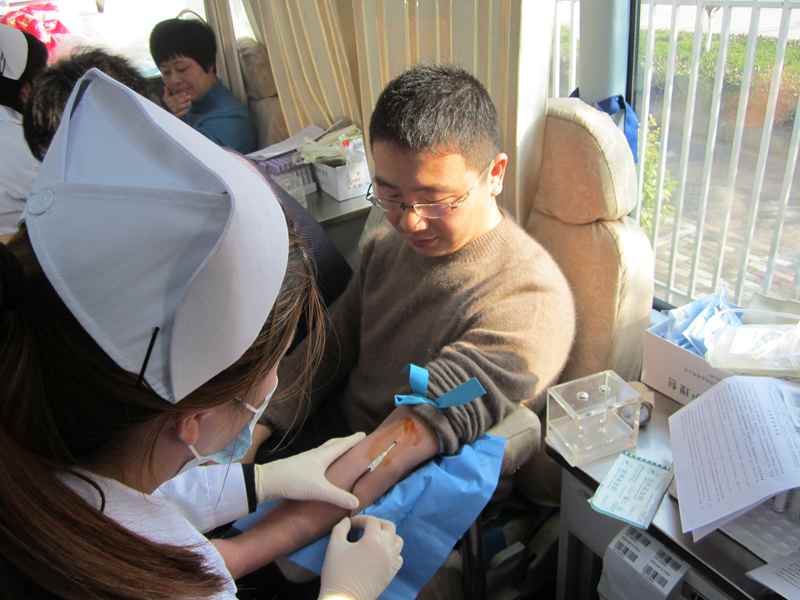 继2013年1月15日我校教师参加义务献血活动后,昨天,我校又有3位教师走上南通市中心血站采血车。