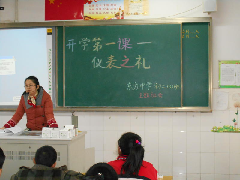 本次主题班会课上,各班班主任精心设计了活动。一看:“重仪表的故事”;二议:仪容仪表的重要性;三问:怎样注意自己的仪容仪表。进而通过对 “我们在学校内要做到哪些?”、“我们在公共场合要做到哪些?”等问题的讨论,使学生掌握了“仪表之礼”的具体要求,懂得了仪容仪表与修养做人的道理。