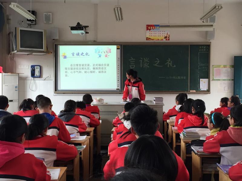 班会课上,各班主任围绕言谈之礼的重要意义和具体表现,引导学生在日常言语交谈、正式场合交流等方面讲究文明礼仪,做到用语文明、心平气和、耐心倾听、诚恳友善。学生积极参与,各班课堂气氛活跃,师生互动频繁,效果明显。