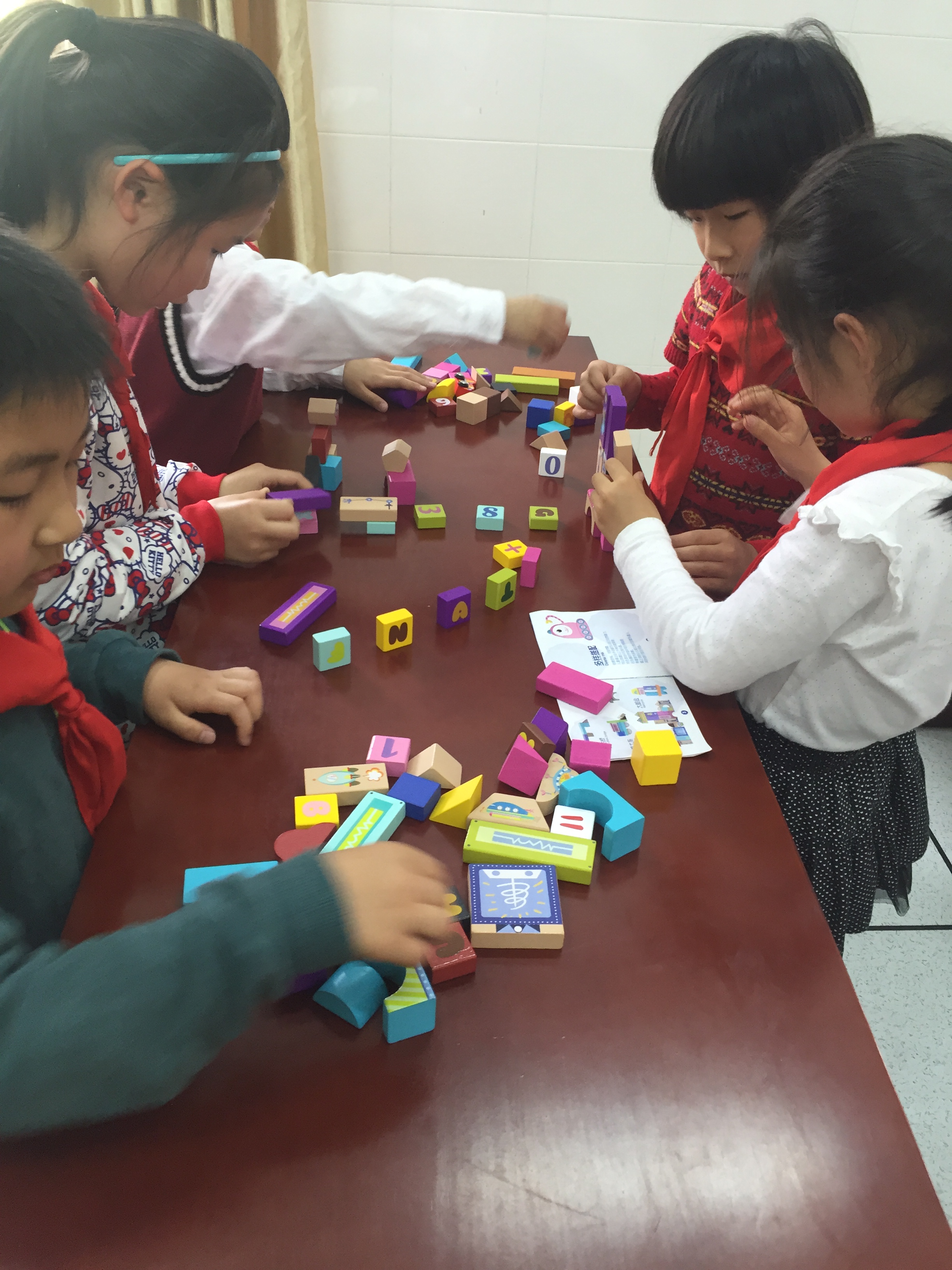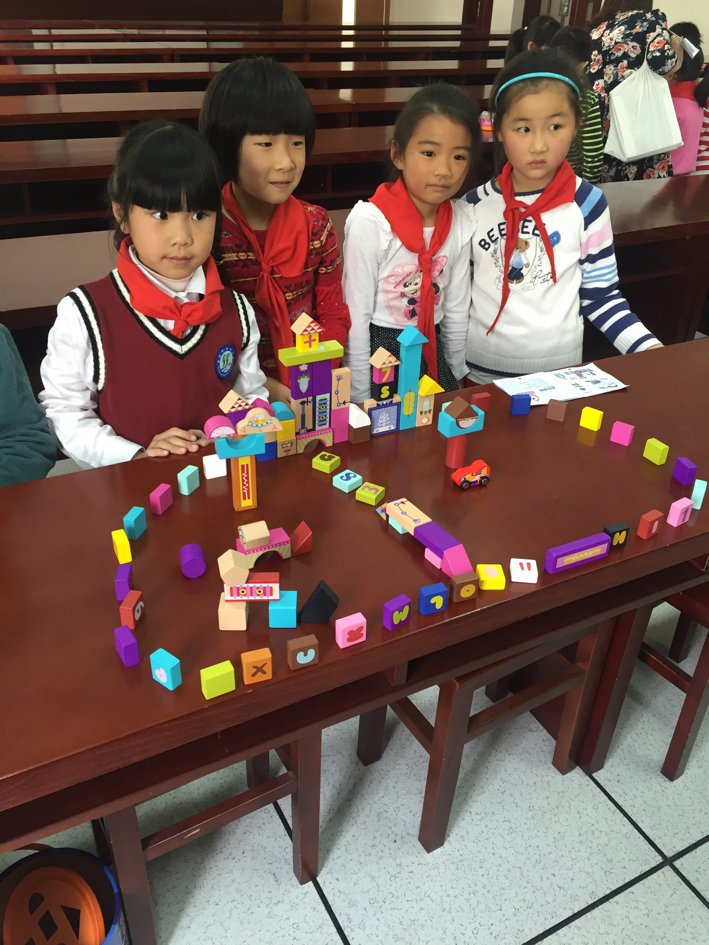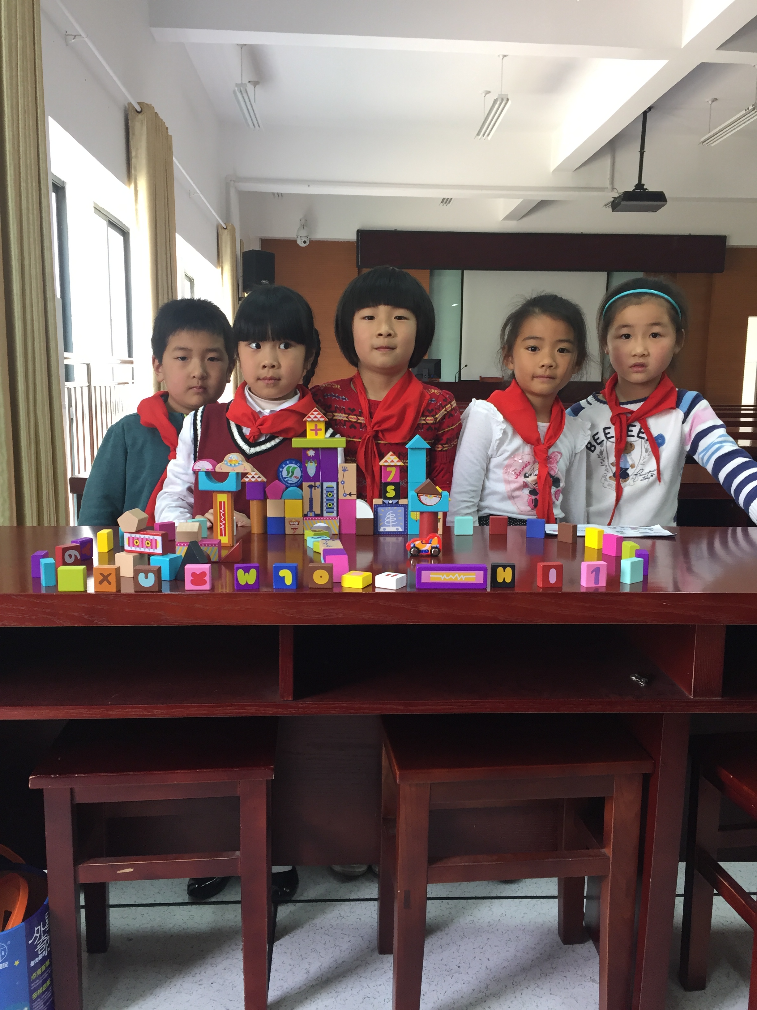 为了发展儿童的动手能力、想象力和创造力,根据低年级儿童的特点,我校在第三届数学节上为儿童提供了一个展示自己才能的舞台。4月22日中午,举行了一年级搭积木比赛。此次比赛属于团体赛,每个班有5名学生参加。比赛要求在规定时间内共同完成创作,比赛中要体现儿童的合作精神和创新精神,拼搭完成后由一名同学进行讲解。