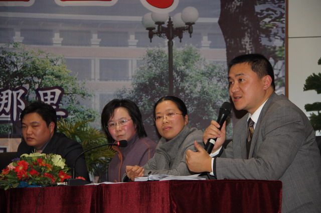 在“名师之路”大型教科研活动中,天星湖中学展示教育沙龙“今天,我们怎样开发自己”。 下午1:50,市教育学会严清会长介绍了天星湖中学的情况。2:00,天星湖中学展示的教育沙龙“今天,我们怎样开发自己”开始。席间,十三位老师妙语如珠,精彩纷呈,沙龙得到了严会长和其他专家的高度评价。