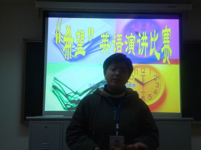 为了加强同学们英语的实际应用能力和口头表达能力,激发广大同学的英语学习兴趣以及活跃英语的学习氛围,我校团委、学生会联合学校教务处举办了第一届“希望”英语演讲比赛,经过初赛的选拔,共有10名选手进入了最后的决赛。12月1日晚,决赛在教学楼六楼大教室如期进行。比赛主要由自由演讲和机智问答两大部分,经过激烈比拼,肖烨同学力压群雄,以91.4分高居一等奖第一名。