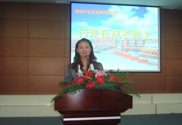 南通经济技术开发区第二届教师演讲比赛于 经过校内初赛选拔,我校派出了张慧、刘丹两位教师参赛。 在激烈的比拼中,我校两位年轻的女教师以真挚的情感,具有震撼力的事例,声情并茂地讲述了她们自工作以来的心路历程,讲述了她们走在成长路上的体会感悟,最后两位均已93.14的高分获得此次比赛的一等奖。