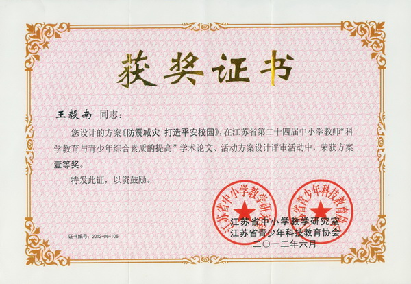日前,江苏省青少年科技教育协会、江苏省中小学教学研究室联合发文,公布了江苏省第二十四届中小学教师学术论文、活动方案评审结果。我校地理学科教 中小学教师学术论文、活动方案的评审活动,旨在促进“科学教育与青少年综合素质的提高”。我校老师在提高科学教育与青少年综合素质的实践中,密切联系现实生活,积极进行教学创新,努力激发学生兴趣,广泛开展各种活动,为学生综合素质的提高做出了贡献。