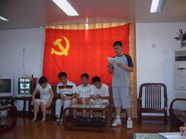 7月22日,我校行政后勤党支部在学校会议室召开了支部会议,就五名学生:周峰、钱丞、周洪亮、黄晓磊、季龙入党事宜进行讨论,会议期间,他们各自的入党介绍人对学生的情况作了介绍,学生本人进行了表态发言,支部成员对他们提出了建议和希望。最后,五名学生均以全票通过表决,该结果将上报开发区组织部,并将进行下一步更为严格的考核。