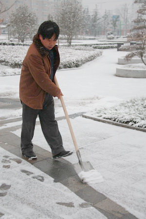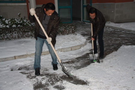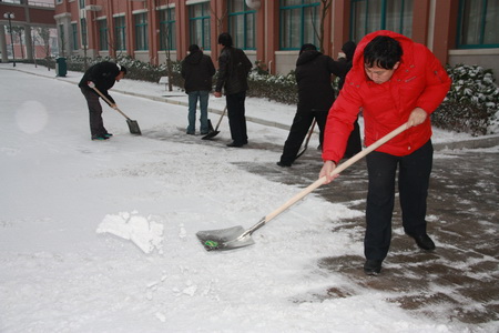 瑞雪降校园 校长铲雪忙